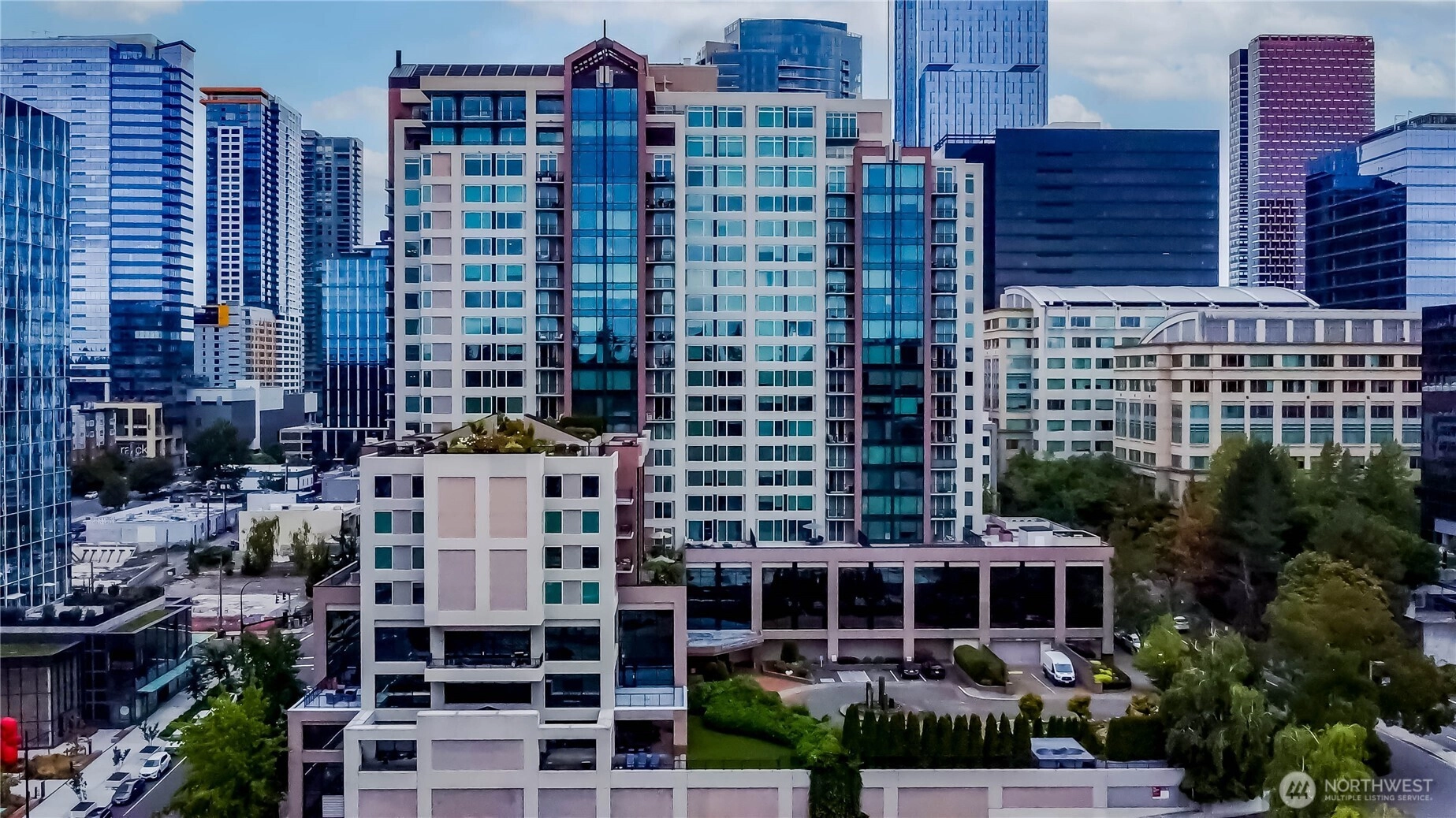 This complex is made up of one 24-floor tower, built in 1995. The building's entrance is located on 107th Ave. NE, behind a courtyard and private cul-de-sac.
