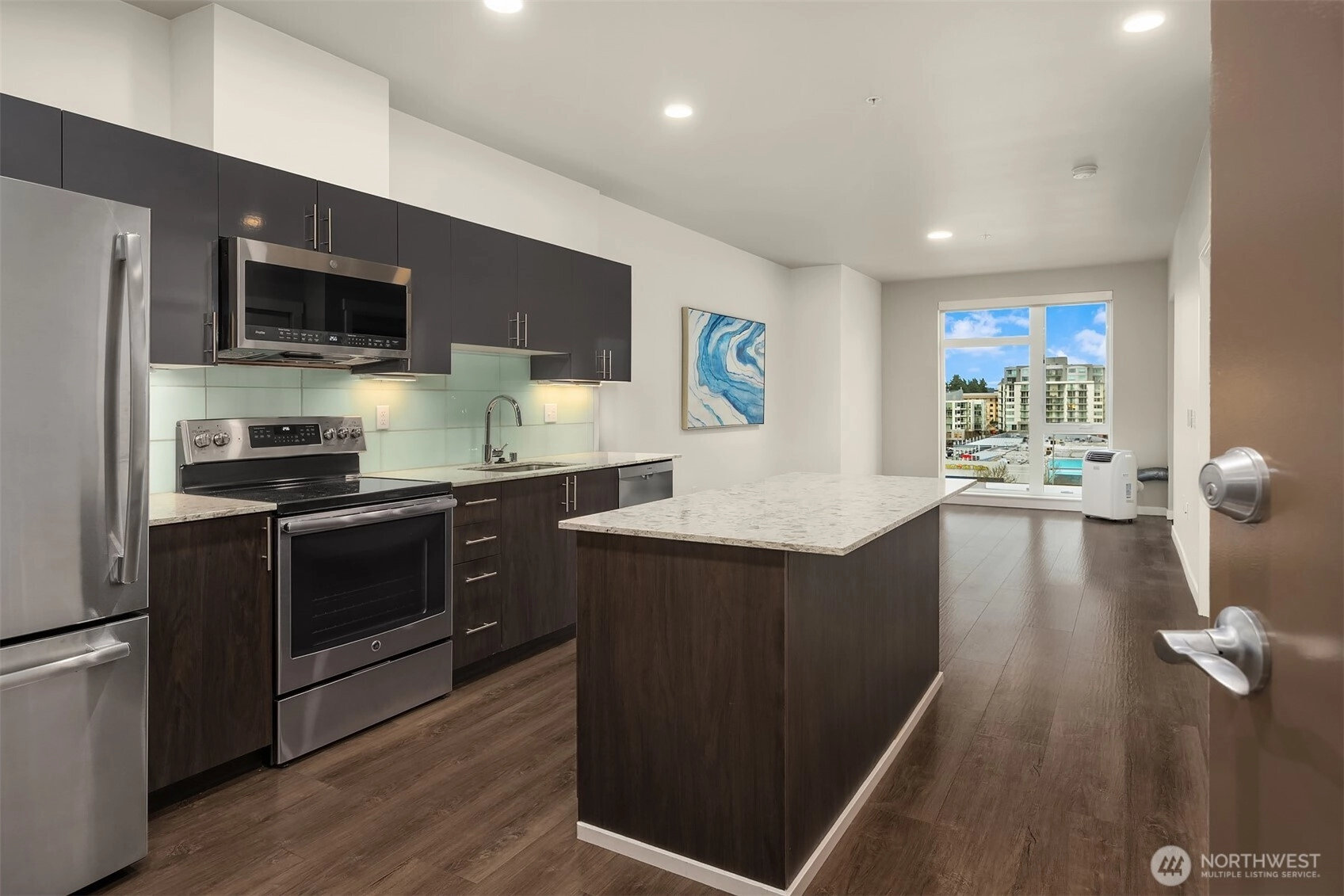 Conveniently located just a few blocks from downtown Bellevue, the Mira Flats Condo is a building with 126 units on 6 floors. Built in 2018, the condo has up-to-date units, an expansive rooftop with views of the city and a club room where residents can relax.