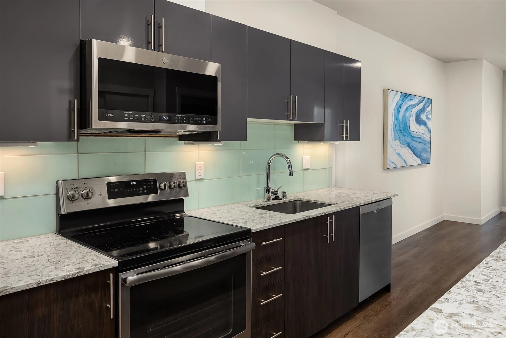 The Mira Flats are located on 103rd Ave NE and NE 10th St, just two blocks from Bellevue Square Mall. They are also located within a few blocks of the multiple Amazon buildings in Bellevue, as well as other large, corporate offices.