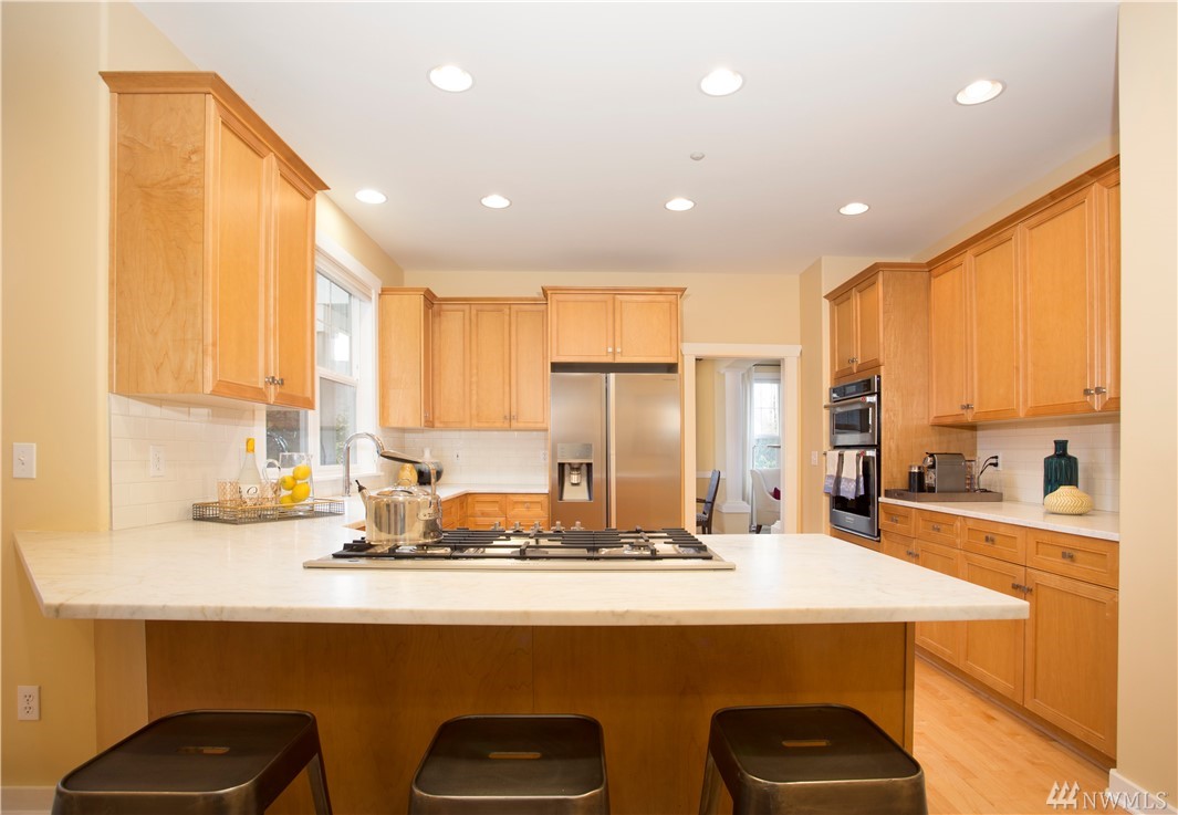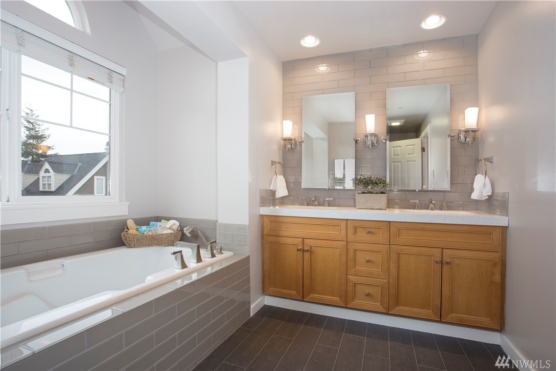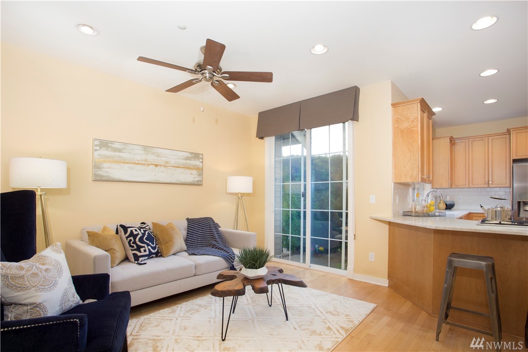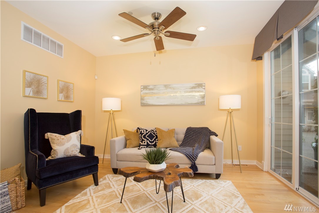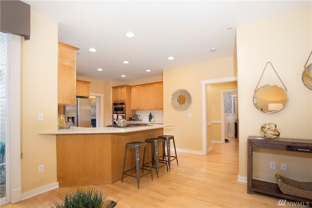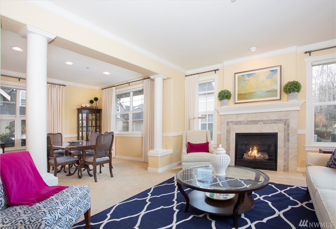 Desirable "Cottages" home in peaceful setting of Issaquah Highlands! Just minutes to restaurants, shops, parks and theater! New roof, gutter & exterior paint (2016). High ceilings bring space to this elegant home with beautiful millwork. Hardwood floor Kitchen includes new countertops, sink, faucet, and updated stainless steel appliances. Master & guest bath remodeled (2015). Master with heated rack & flooring & new insulated windows. Large walk-in closets. Main floor den can be 4th bedroom.
