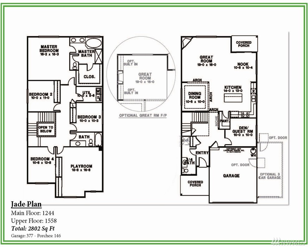 FINAL FEW! The Jade by Great NW Homes. Offering a true great room~perfect for every day living. Lg living rm, formal dining, spacious nook & lg kitchen. Custom cabinets w/ granite/quartz cntrs, full tile b/s, stainless appl. & walk-in pantry. Upstairs find 4 generous sized bds, bonus/5th bed & a large master retreat complete w/ a 5-piece bath. Office/Guest w/ 3/4 on main. $4K towards closing + $3K design credit w/ pref.lender. Craftsman, Industrial or Modern design options.*Photos not of hm*
