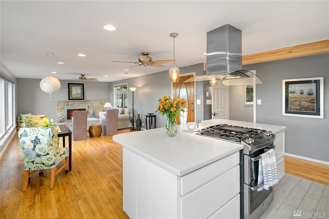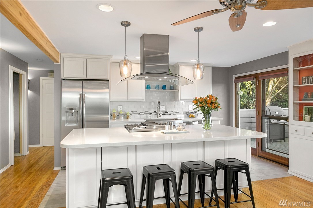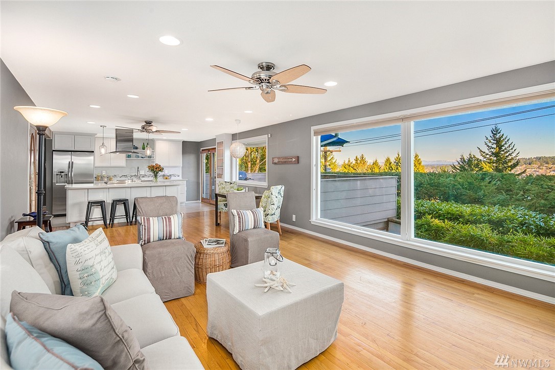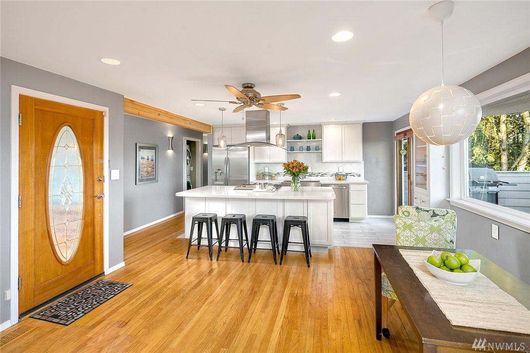 Check this out - 2 homes for the price of one. First floor features a 1,390 sq ft remodeled 3 bed/2 bth home with Lake Washington views. Hardwood floors throughout, remodeled kitchen (all appliances included), gorgeous master bath, gas fireplace in living room. Next, the lower level is an adorable 850 sq ft 2 bed/1 bath apartment. The kitchen is complete with full size appliances (all included). Both floors have their own washer/dryer. The entire lot is completely fenced. Shoreline SD.