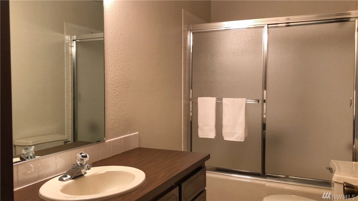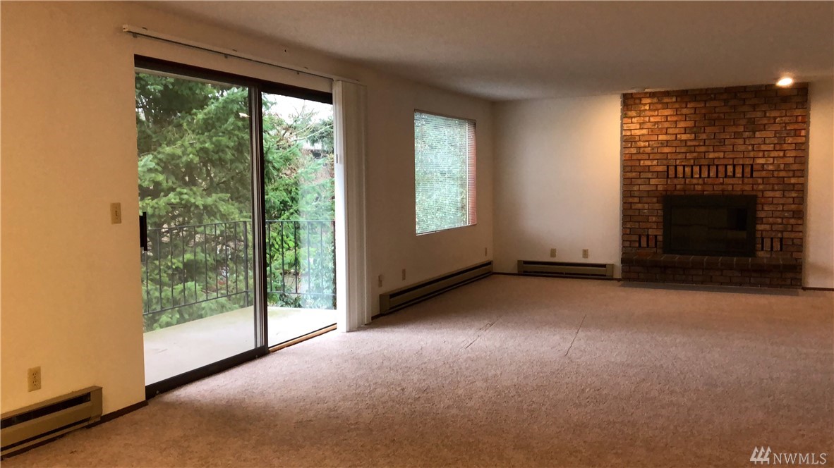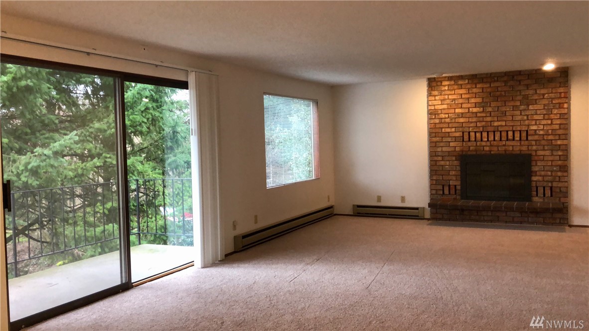 Beautiful views of the Cascade Mountains and stunning sunrises! This super clean level entry unit has 2BR, 1.75BA with 1296 sqft of living space. The spacious living rm features a fireplace w/ a brick surround. Kitchen is open to the dining area & has loads of storage. Master BR has a walk-in-closet & a huge attached .75 bath. New carpet & fresh paint throughout, move in ready! Garage parking w/ storage space that can be converted to another parking space as well as a second storage area.