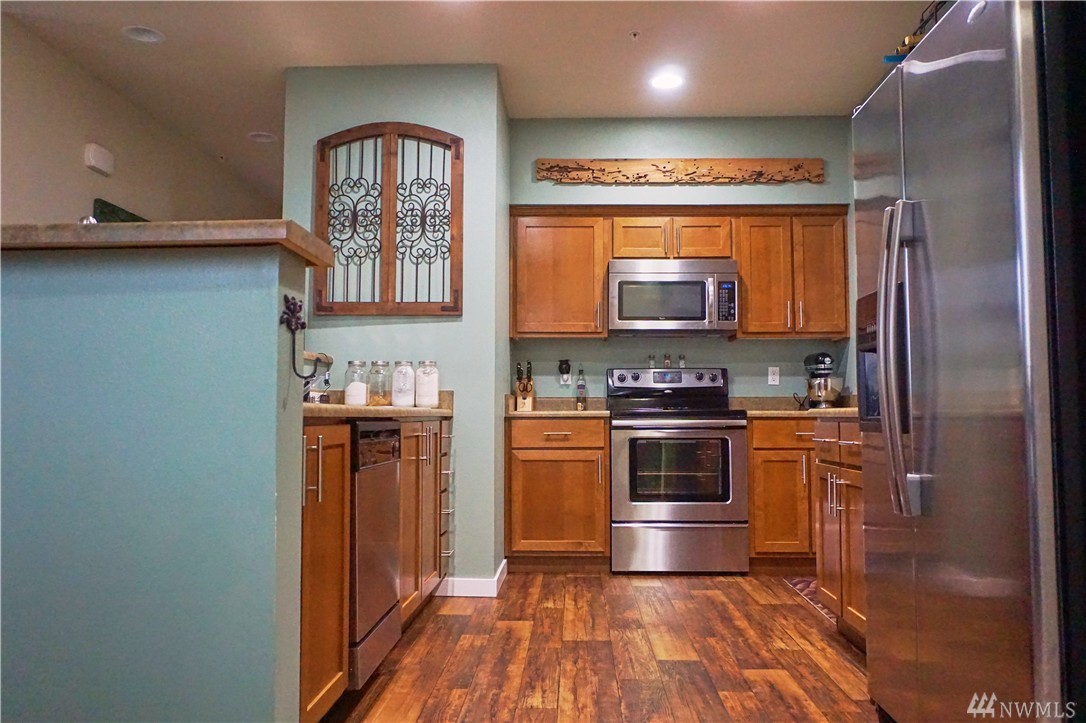 The most sought after Condo complex in Snohomish. Native growth protection area on 2 sides provides maximum privacy. Immaculate 2 bedroom, 1.75 bath. Large kitchen with eating bar has upgraded SS appliances with a glass cook top range. Upgraded lighting throughout, 9 foot ceilings and 1 car attached garage with extra storage & shelving. Just blocks form Snohomish Station shopping center.