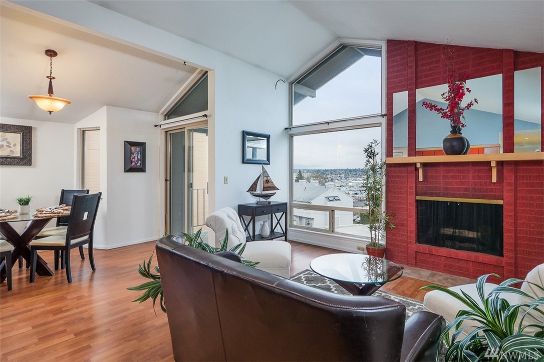 Private top floor End Unit Condo w/Phenomenal Views & Fantastic Magnolia Location. Vaulted Ceilings, Fireplace & View Deck. Great Open Floor Plan w/Floor to Ceiling Windows. Kitchen has Granite Counters, Tile Floors. Master w/Full Bath. Extra Large 3/4 Bath off 2nd Bed. Lots of Storage & Washer/Dryer in Unit. Low HOD's, EZ Access to Discovery Park, Ballard via Locks or Bridge & Just a Few Blocks from Stores, Bus Lines, Bike Trails & Fisherman's Terminal. Excellent Schools.