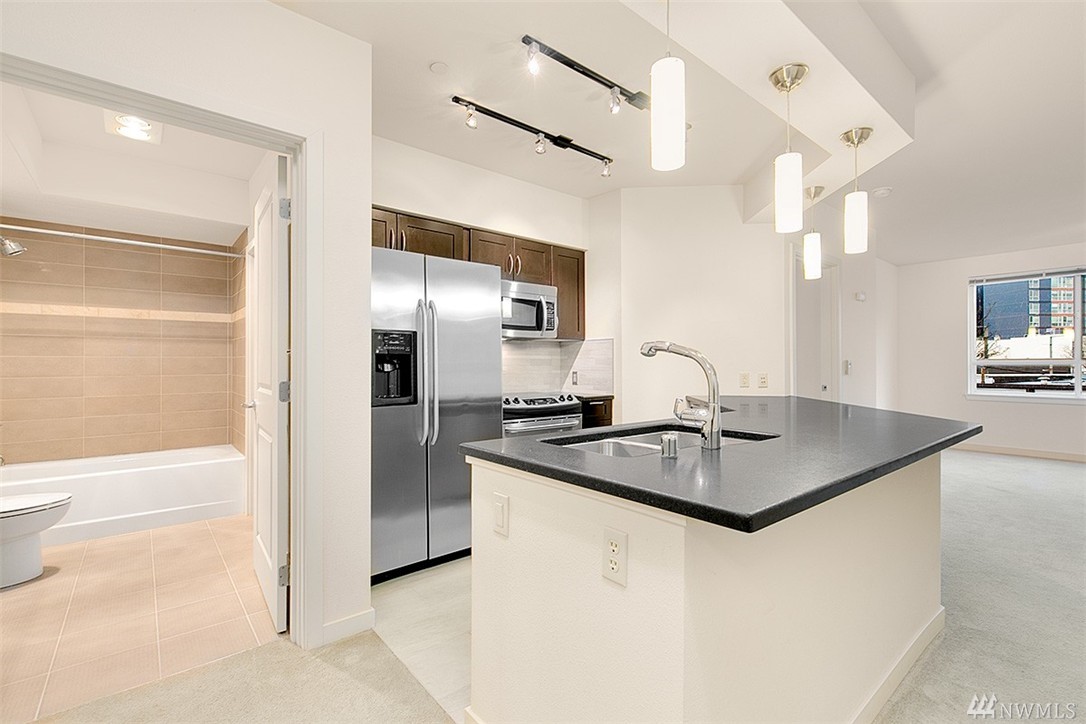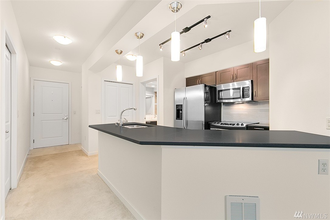 Live in the heart of Ballard at Canal Station North! Enjoy the vibrant mix of new and historic Ballard. Corner unit with one shared wall and circular layout. Spacious kitchen with stainless steel appliances, granite counter tops, tile floors, and plentiful light. Private balcony, in unit washer / dryer! Featuring 99 Walkscore in downtown Ballard, Farmers mkt, 75+ restaurants & multiple buses. Concierge, fitness center, sauna / hot tub, owner's lounge. Secure parking and bike storage. Must see!