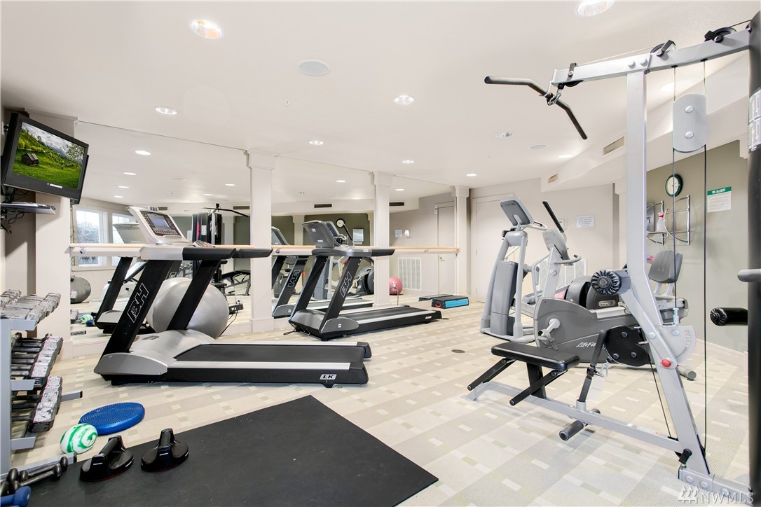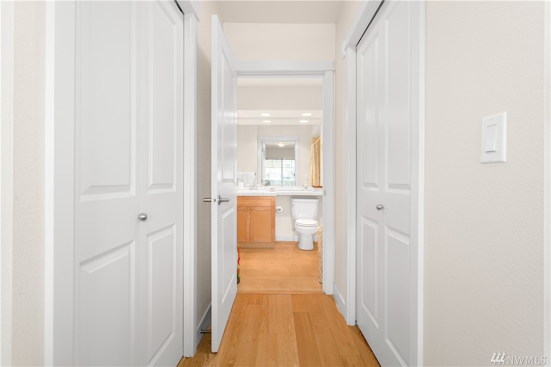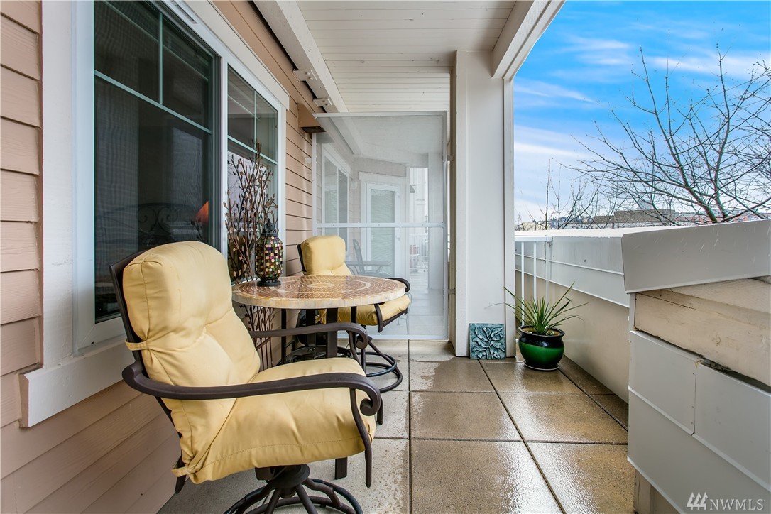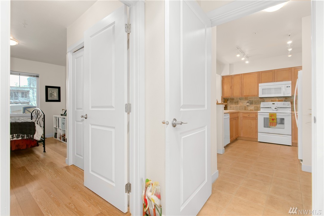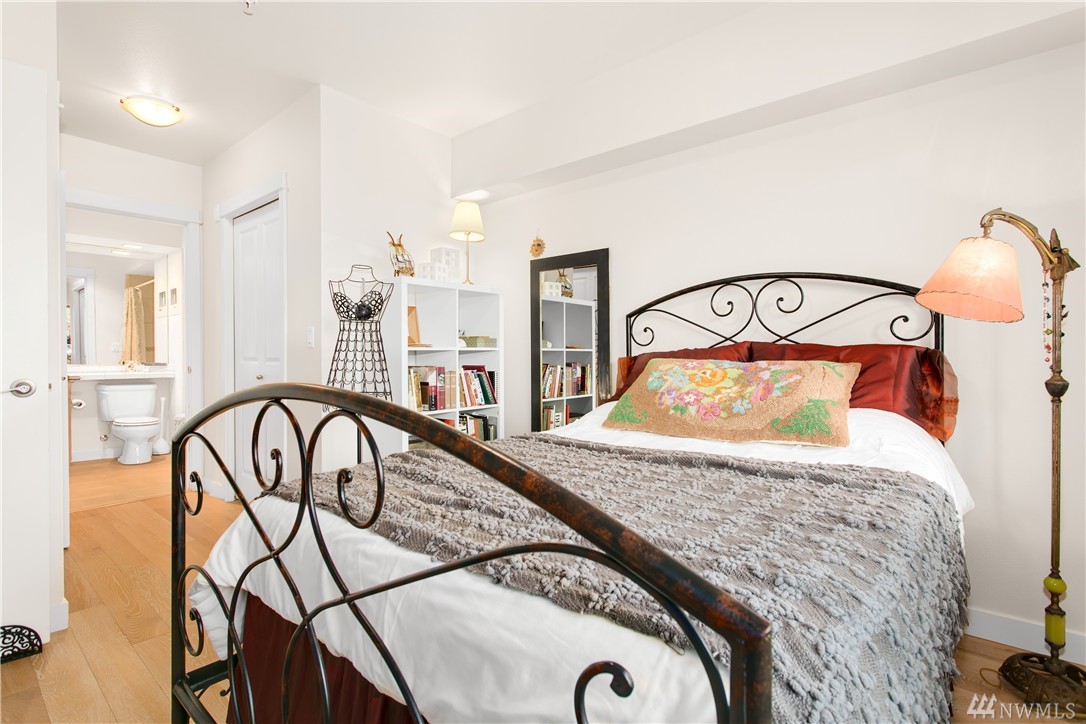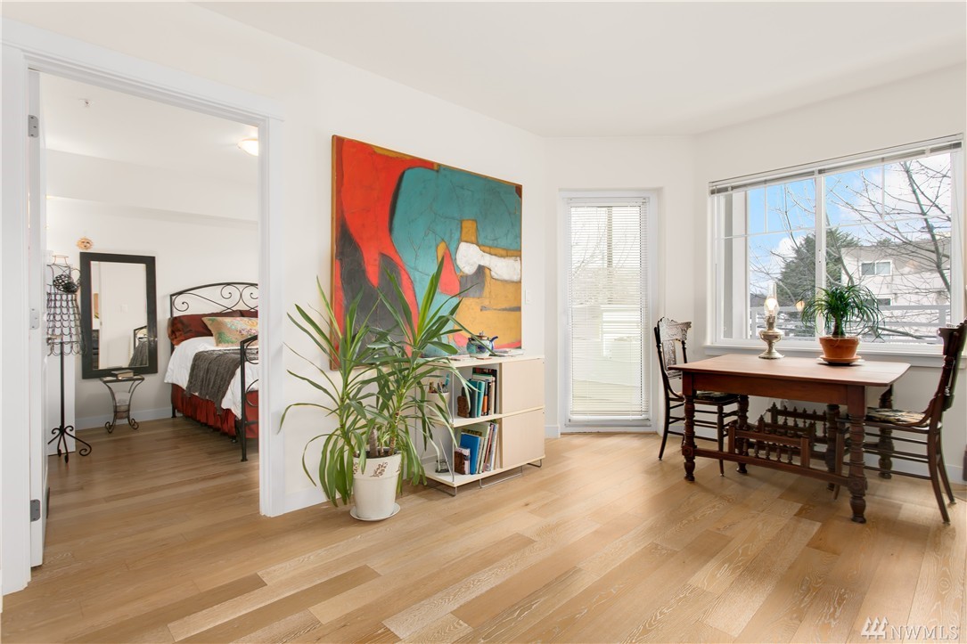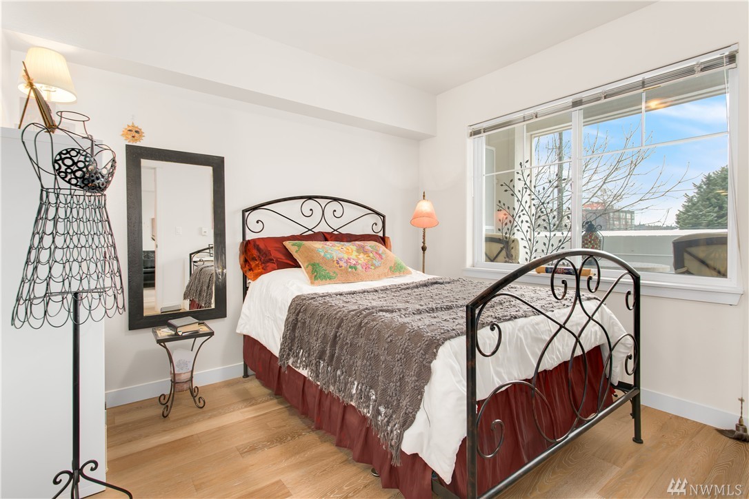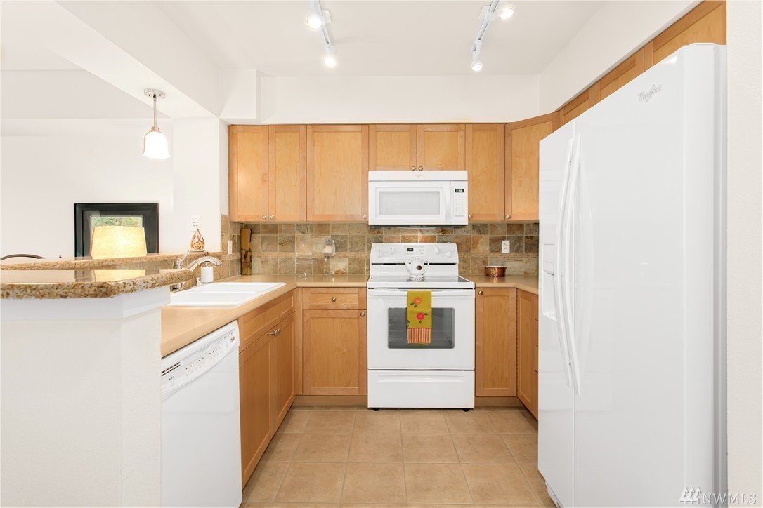 Live at the popular Ballard Place Condos! West facing 1 bedroom unit abundant w/natural light boasts new sand oak hardwood flooring, private patio & cozy fireplace. Open kitchen w/newer appliances, granite counters & maple cabinetry w/eating bar. Circular floor plan w/full bath, walk-in closet, in-unit washer dryer & 2 garage spaces! Low monthly dues, strong HOA & NO rental cap. Live in luxe w/concierge, business center, gym, hot tub, roof top deck & more! Near shops, eateries & entertainment!