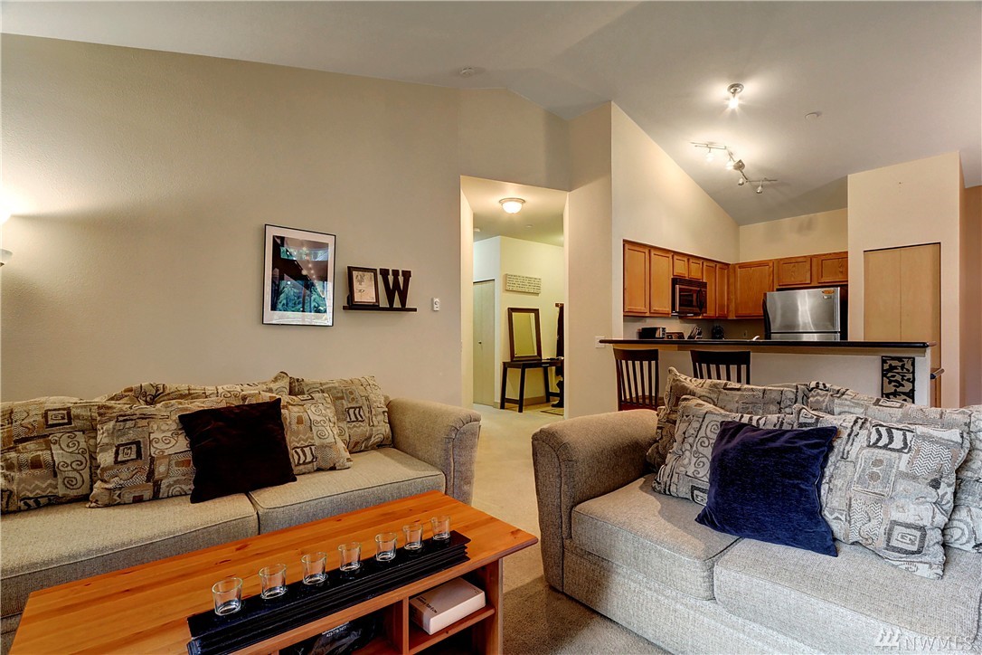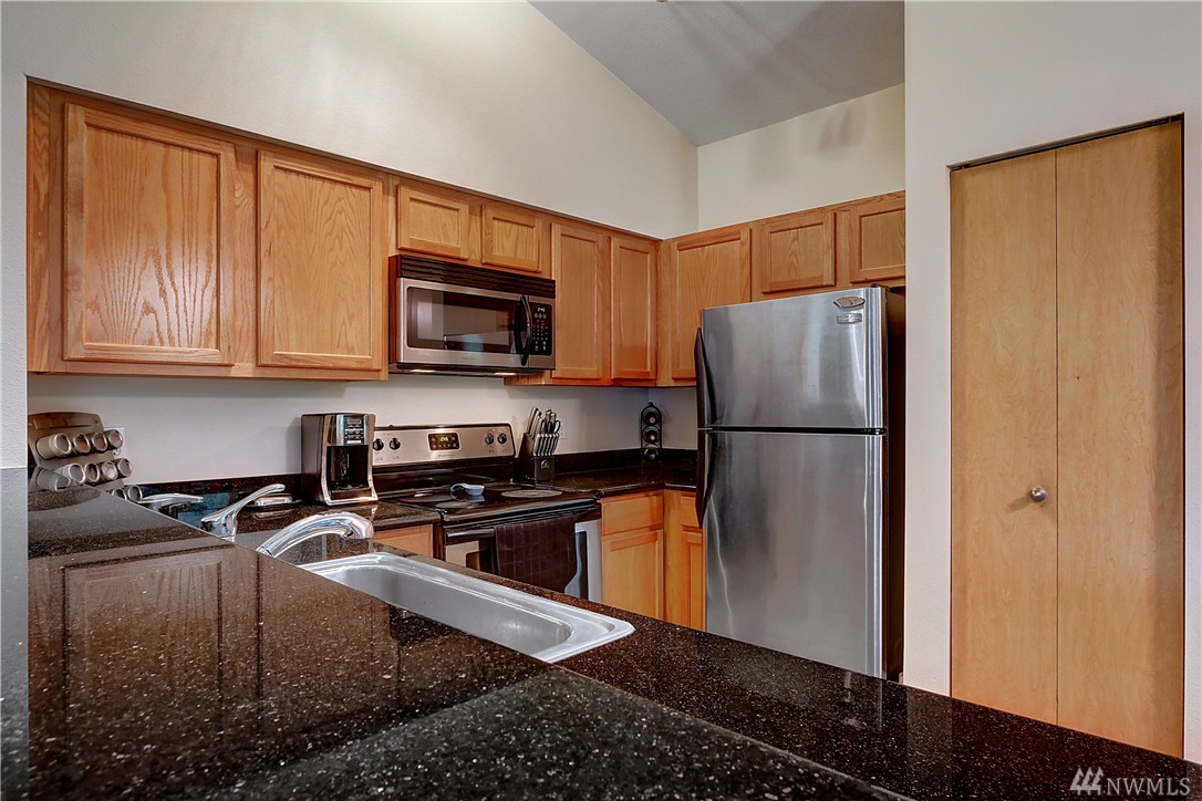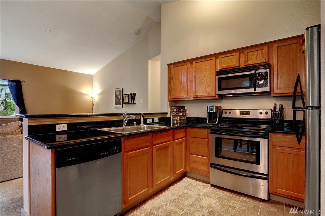 This fantastic 987 sq ft, 2 bedroom, 2 full bath home is situated in a quiet neighborhood with peek views of the local Golf Course! Soaring vaulted ceiling extends from the Living Room through the Dining Room and Kitchen. The Kitchen has lots of beautiful cabinetry & counter space, gorgeous granite counters with matching back splash, sleek stainless steel appliances and a pantry for additional storage space. Relax on the deck and take in the peaceful, serene peek views of the Golf Course!