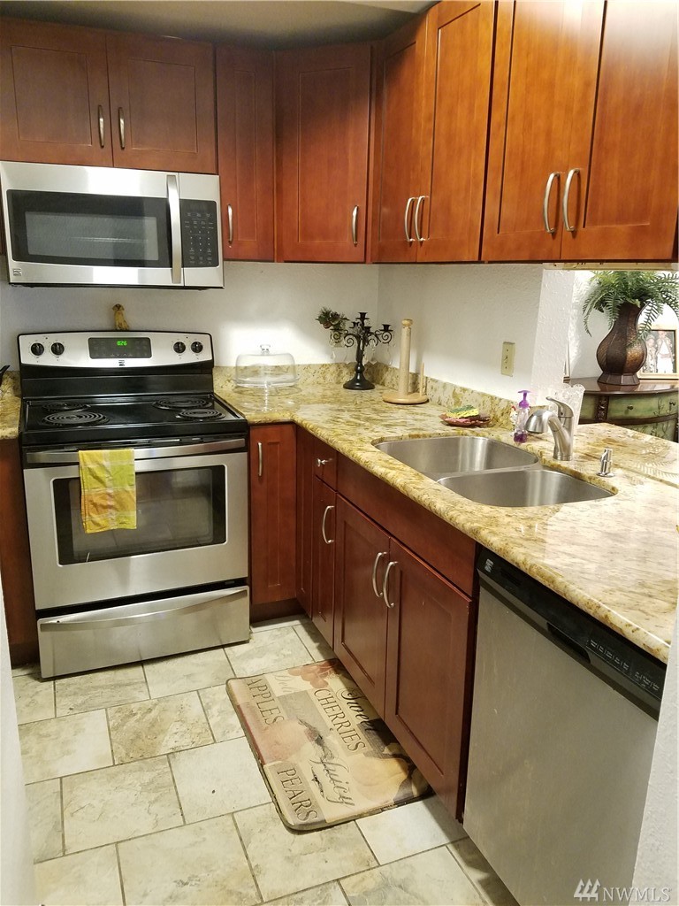 Freshly painted, move-in ready 3BR, 2BA Edmonds Home in the Golden Leaves complex. Quiet area and close to main access points, shopping & amenities. Updated kitchen appliances, washer/dryer, water heater. Large Master w/bath, walk-in closet. Covered patio w/storage, nice open space for a pet or entertaining. Carport w/door leading directly into secured building. Amenities include hot tub, sauna & exercise room. Blocks from Swedish Hosp, Edm/Woodway HS. Small pet okay (buyer to verify). Must see!