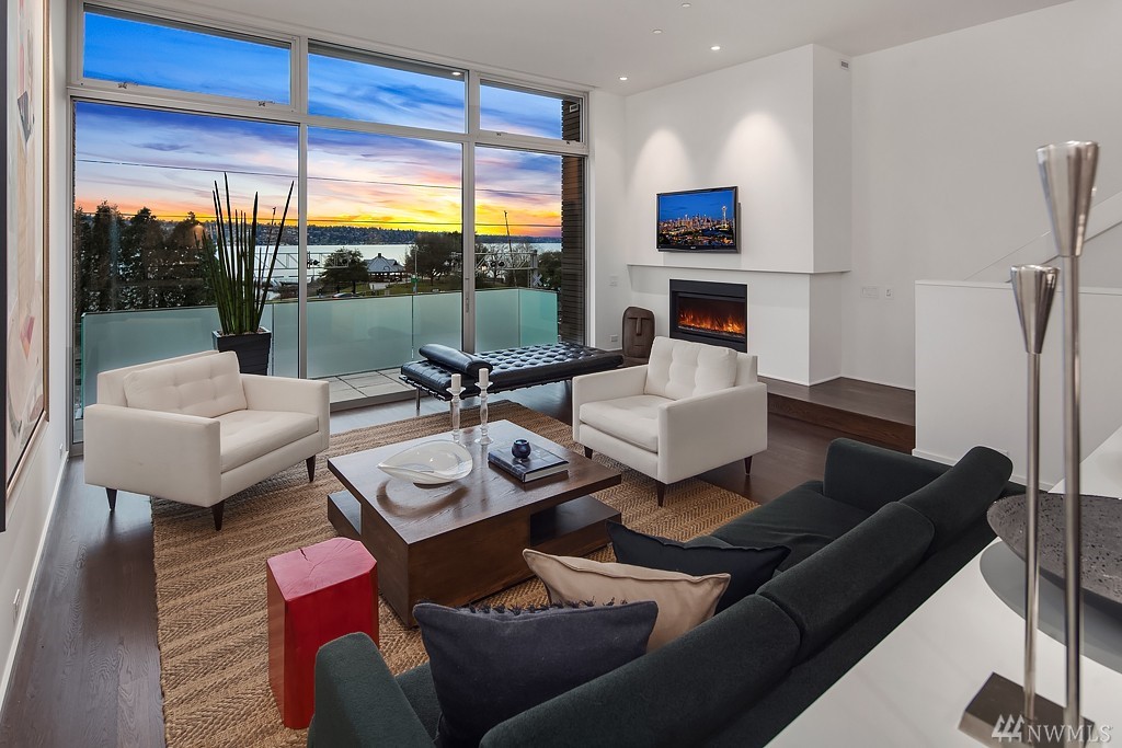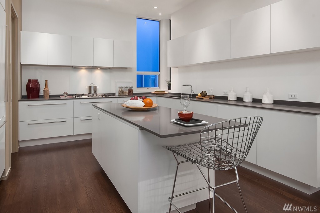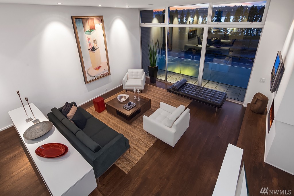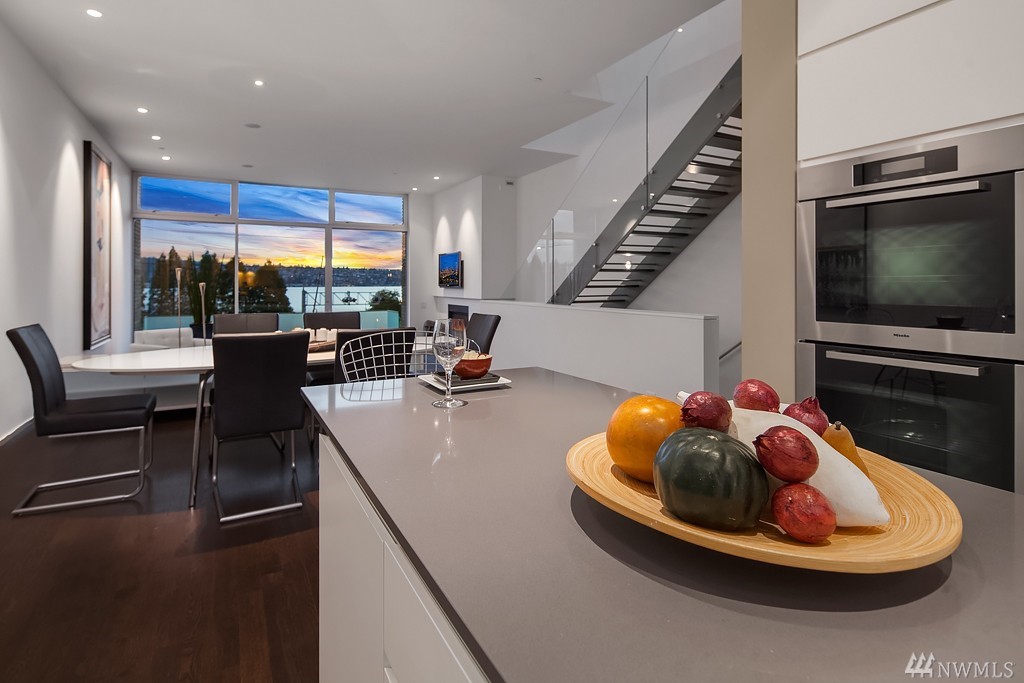 Distinctively modern - Precision crafted to exacting standards – Fusing lake views with crisp steel, modernist materials, and architectural lighting. 1750 is a rare offering of 7 modern townhome condominiums. Floor to ceiling glass prominently displays westerly views of Lake Washington’s coastline. Noteworthy architectural details - custom manufactured steel and glass floating staircase, 17’ skylight, in-floor radiant heat, hardwood flooring throughout, and Carrara marble baths.