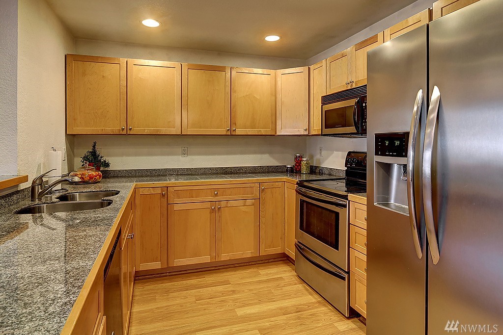 Steps from the shores of Juanita Beach awaits this inviting 2 bedroom, 1.75 bath garden level condo. Spacious kitchen with granite countertops & stainless appliances. Open layout lends itself to entertaining. Easy care laminate floors throughout. Move-in condition with new refrigerator, washer, dryer & water heater. Two parking spaces, including private garage PLUS storage! Enjoy leisurely strolls to coffee shops, pubs & restaurants. Nearby bus lines & easy access to I-405. Welcome home!