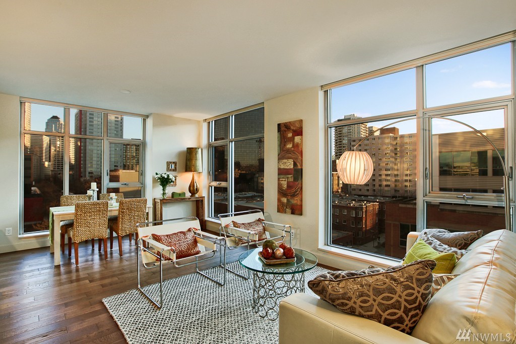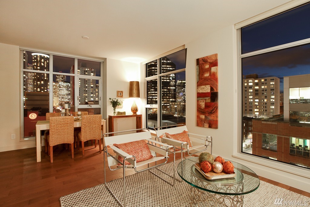 Beautiful SW corner home in the coveted Insignia South Tower. 2 bed/2 bath condo with AC & built with premium materials that are guaranteed to impress you. Enormous windows shining volumes of natural light even in winter. Amenities to die for: 41st floor common areas with city & water views, & a reservable, "sky retreat" for parties, ginormous gym, pool, theater, concierge, dog run and 7th floor "Open-air-Park". 98 walk score - a few blocks to restaurants, Amazon, Jazz Alley & Whole Foods.