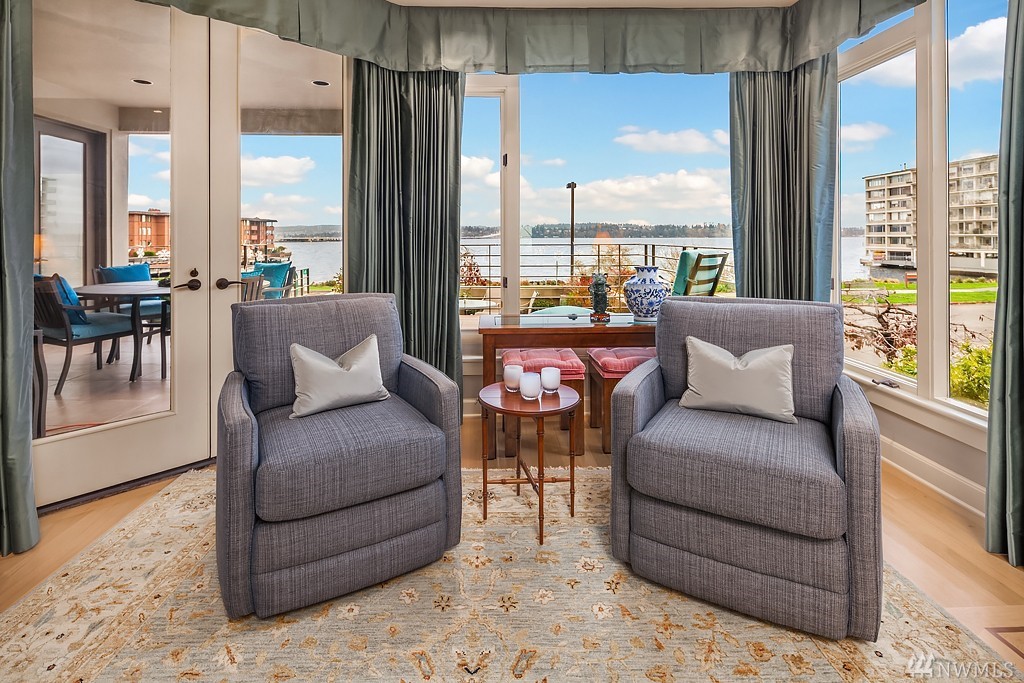 Stunning Lake Washington, Cascade Mountain & Park views set the stage for this remarkable condominium offering convenient one-level living. Formal day rooms complemented by a casual sun-filled family room, noteworthy cook's kitchen, generous master suite plus guest room defines this enviable & spacious home located in the heart of Madison Park. French doors open onto a partially covered entertainment size terrace & separate garden patio, offering year round enjoyment in a private setting.