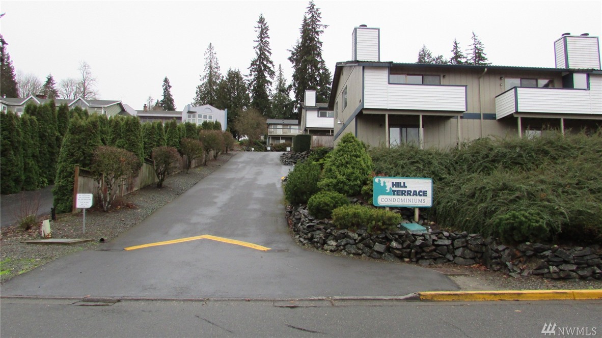 2 bed, 1.5 bath, 1040 sq ft, 2 level condo. Spectacular view of the Puyallup Valley and Olympic Mountains. Living room with fireplace and slider to the back deck with storage. Master suite has slider to the back patio. Bring your tool belt and vision to make this place shine. Community has a pool. Convenient location to amenities, freeways, schools, and commuter station.