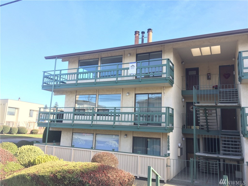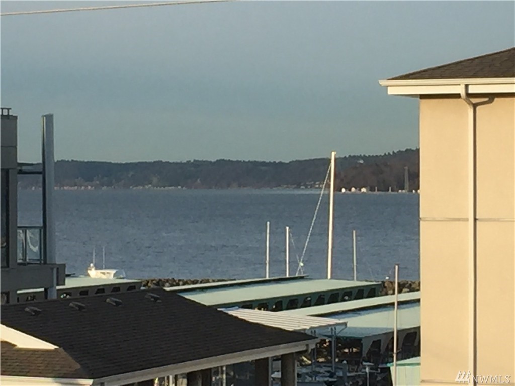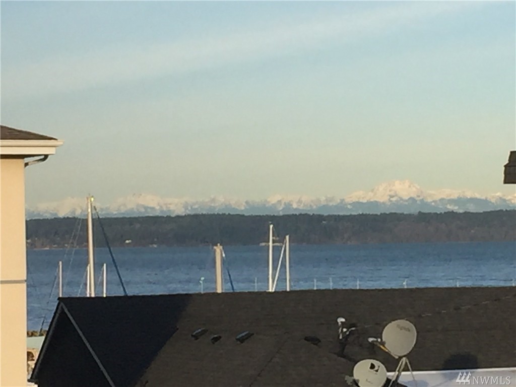 3 bedrooms, upper floor, Great sound and Olympic Views. Half block to Marina. Hugh one level condo with New Kitchen, Granite and SS appliances. Large Kitchen pantry and Laundry. Master bedroom has fireplace, walk-in closet, Whirlpool tub, and lots of storage. Spacious Living room with TONS of natural light, New hardwood flooring, Doors & Trim. Three large bedrooms with new carpet. New Interior paint. Large covered wrap around deck with two sliders, great for entertaining. Security gate.