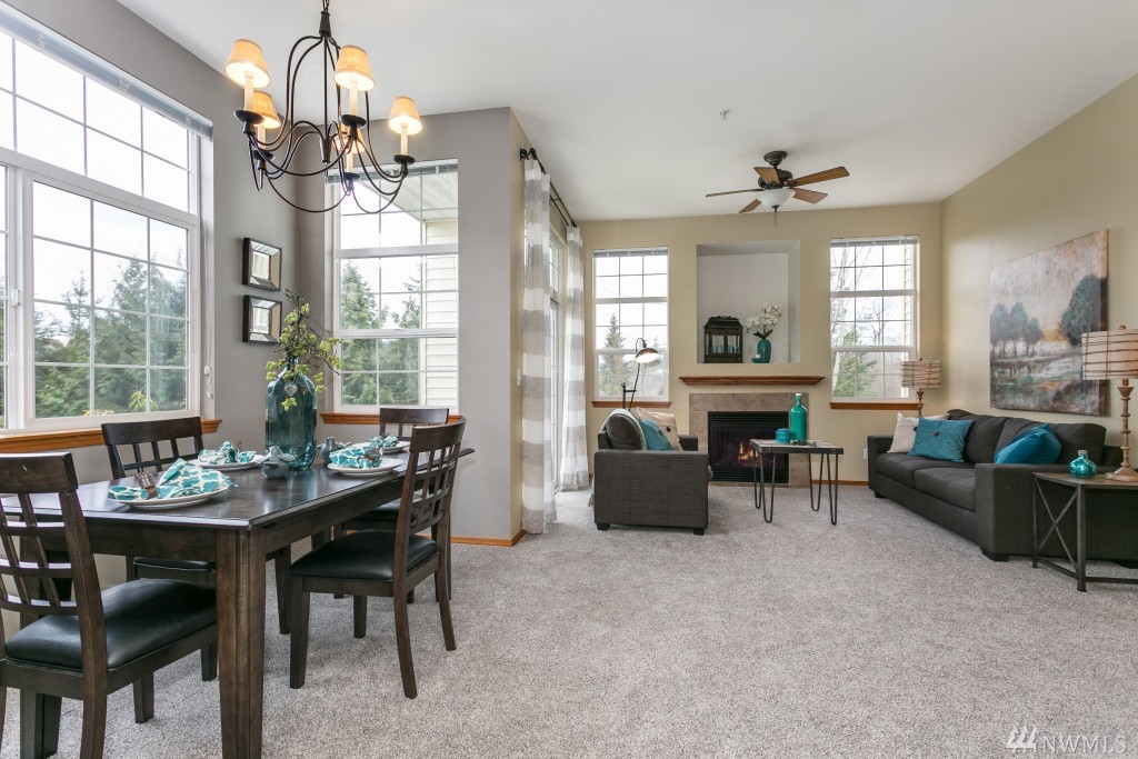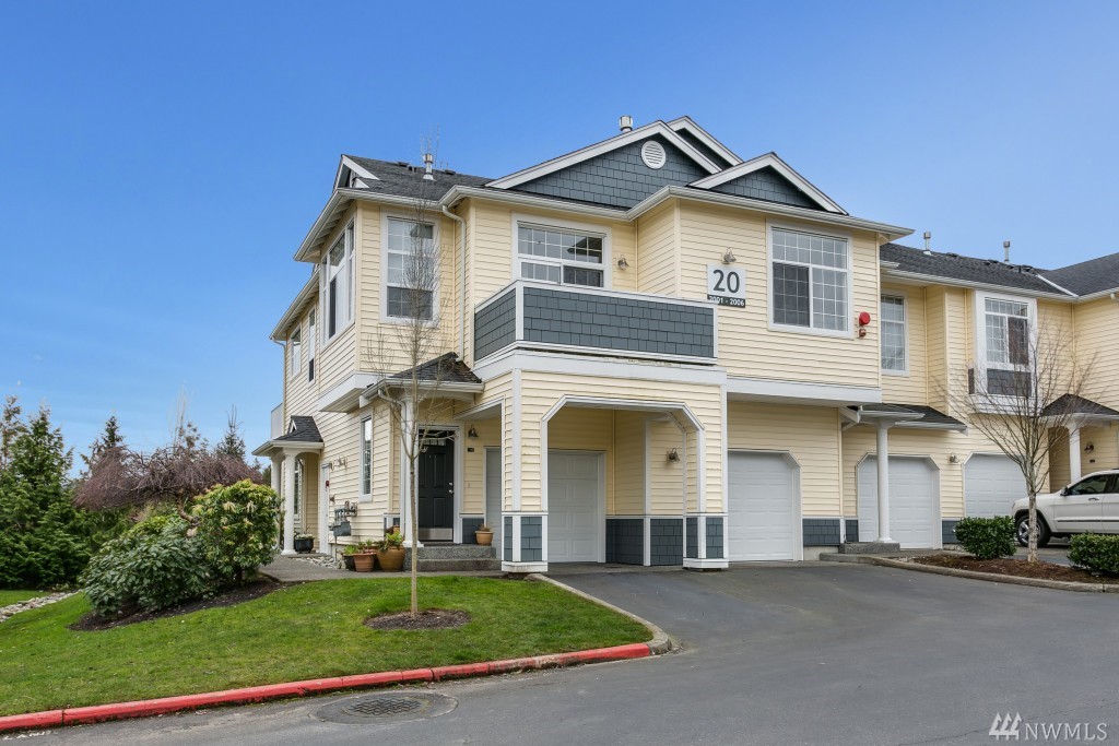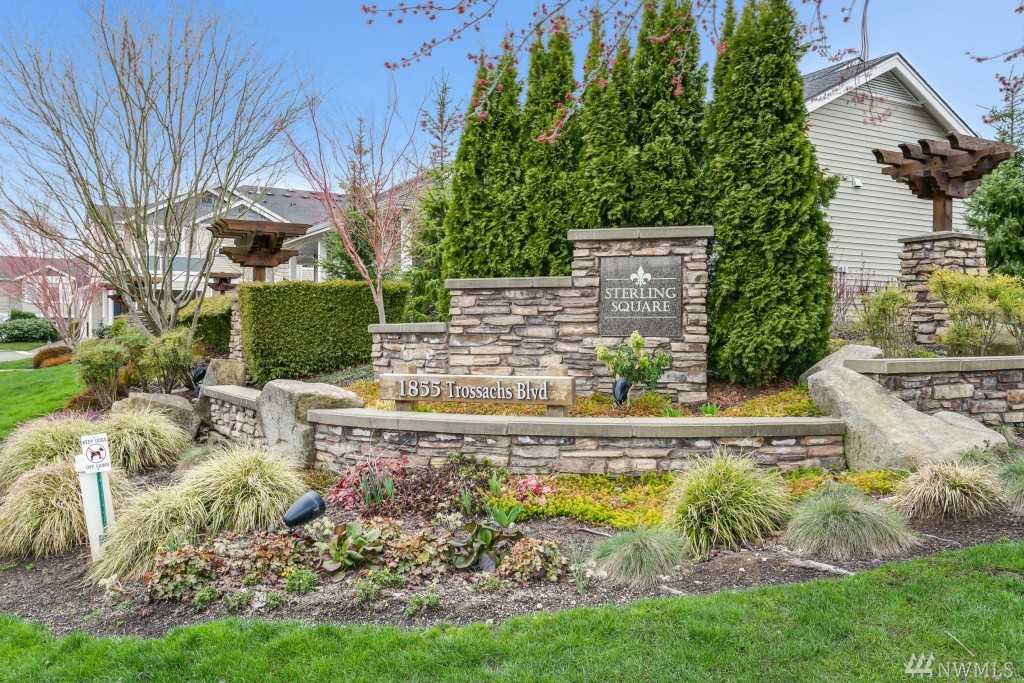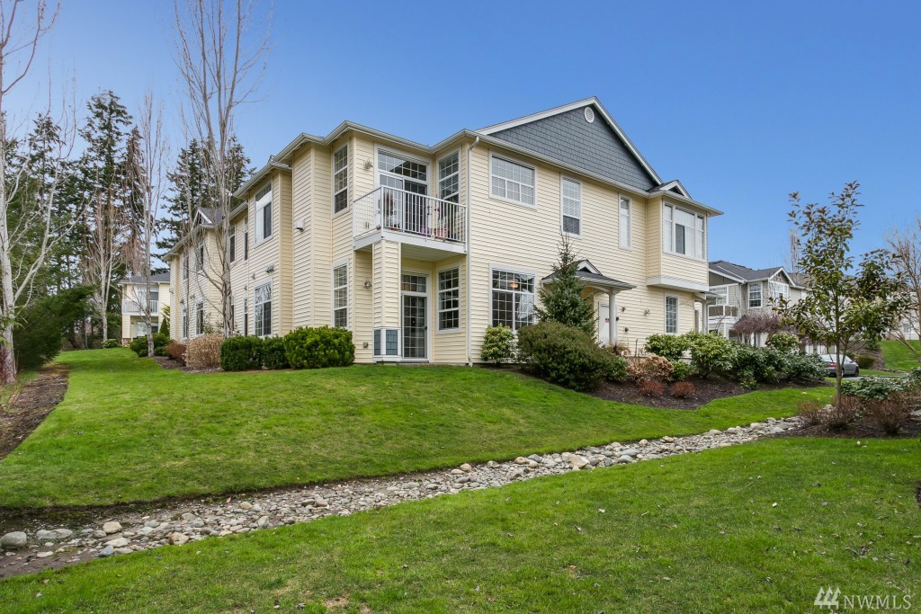 This open and inviting home features tranquil pond and greenbelt views in the coveted Trossachs community. Condo is located in the best location in Sterling Square! Features include 10 foot ceilings, 2 beds/2 baths, gas fireplace, spacious walk-in-closet, mud room w/custom storage shelves, large pantry, and attached extra wide garage for plenty of storage space. Patio overlooks trails and pond. Fresh paint, new water heater and brand new carpet! In the award winning Issaquah School District.
