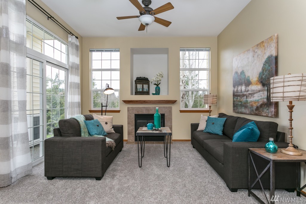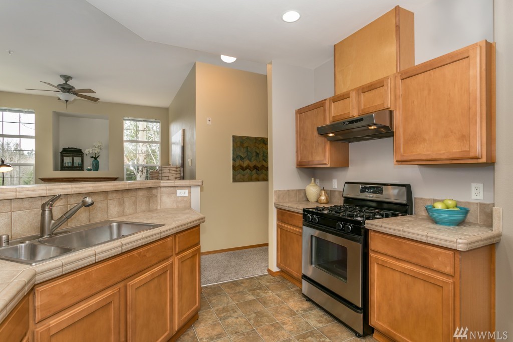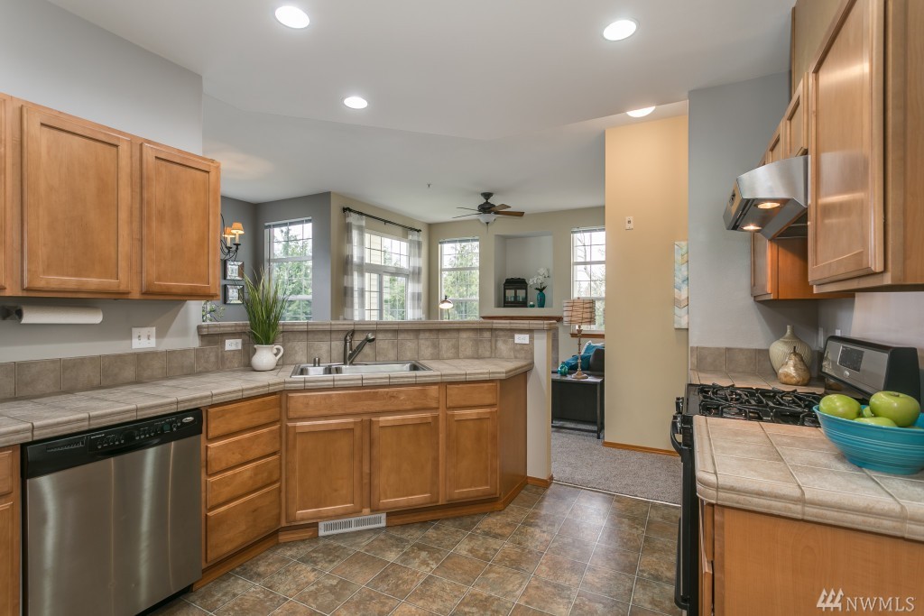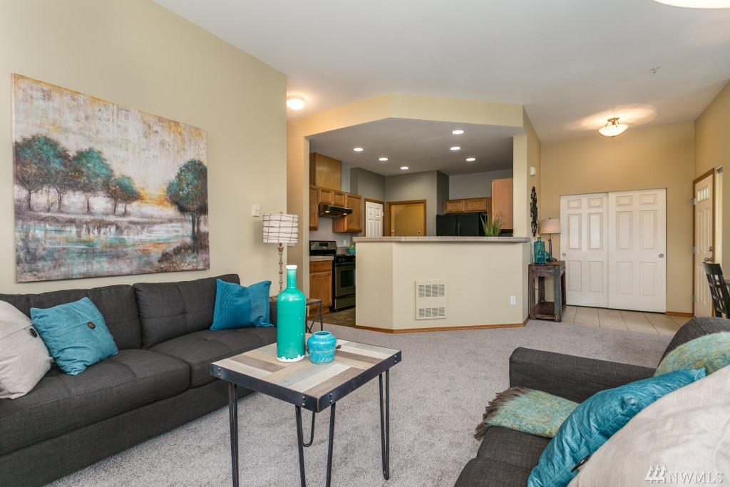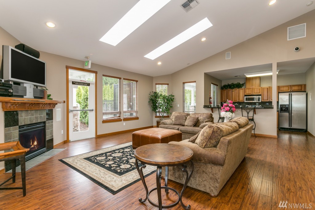 This open and inviting home features tranquil pond and greenbelt views in the coveted Trossachs community. Condo is located in the best location in Sterling Square! Features include 10 foot ceilings, 2 beds/2 baths, gas fireplace, spacious walk-in-closet, mud room w/custom storage shelves, large pantry, and attached extra wide garage for plenty of storage space. Patio overlooks trails and pond. Fresh paint, new water heater and brand new carpet! In the award winning Issaquah School District.