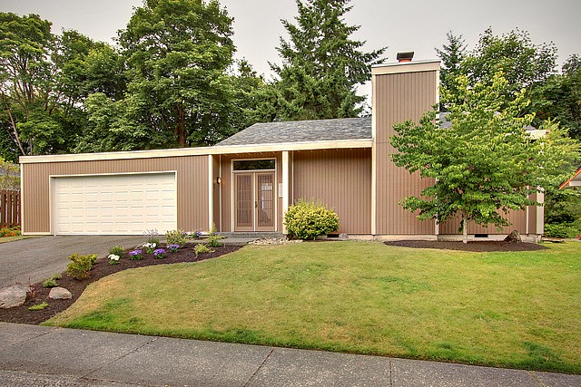 Newport Hills' newest offering... contemporary, updated, one level home backing to a greenbelt in the sought after Bellevue School district. Come see this gem with brand new kitchen cabinets, slab granite counters, stainless appliances, fresh paint, refinished hardwood floors and all within walking distance of the Newport Hills Swim and Tennis Club. Vaulted ceilings, large deck backing to greenbelt and the delightful zen garden courtyard are just a few of the details that set this home apart.