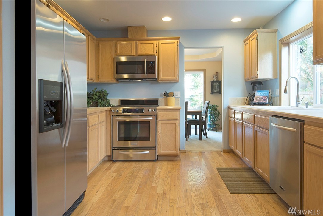 Contemporary 2-story w/3bdrms plus an upstairs family/bonus rm. Oversize 2-car garage & a huge, fully fenced, level back yard! Great energy features w/gas heat, hot water, & fireplace. Gorgeous master suite w/French doors and an impressive walk-in closet plus a 5-fixture bath w/soaking tub & a separate shower. Chef's kitchen w/pantry, eating area, and SS appliance package including: gas range, new space saver microwave, & ultra-quiet KitchenAid dishwasher. Excellent condition and value!