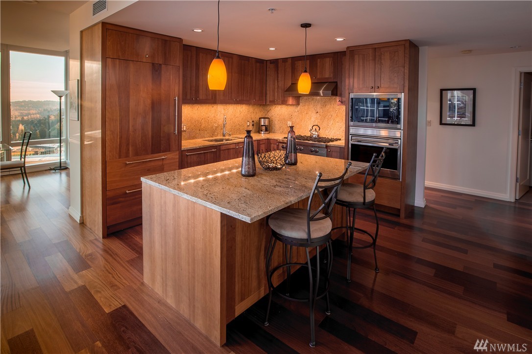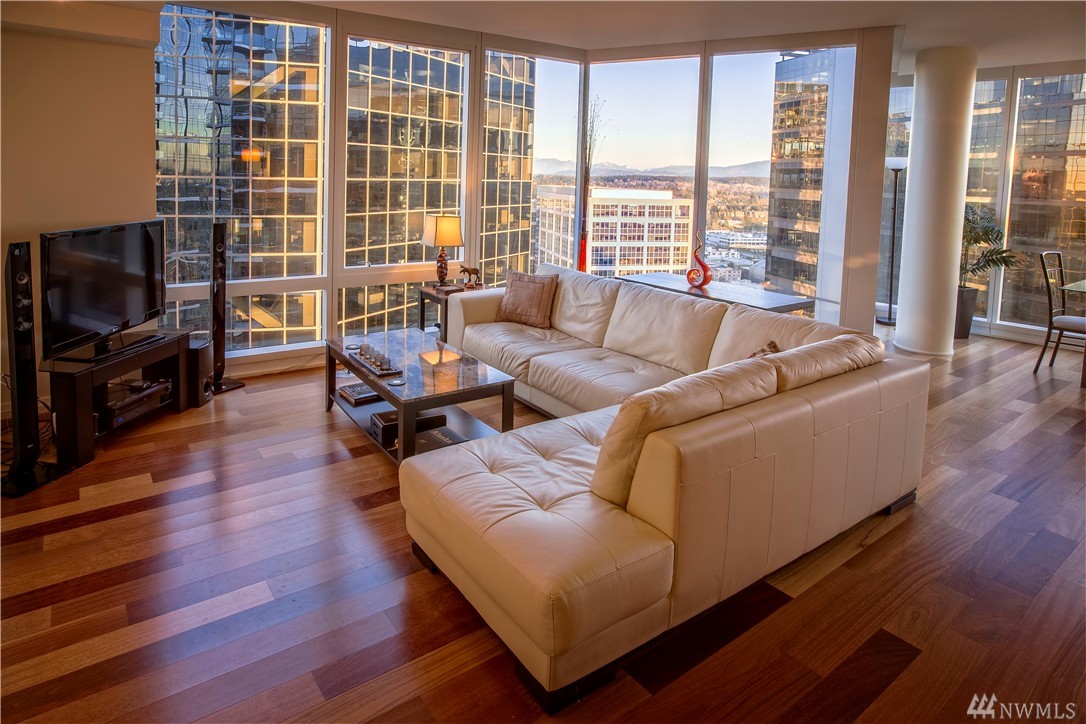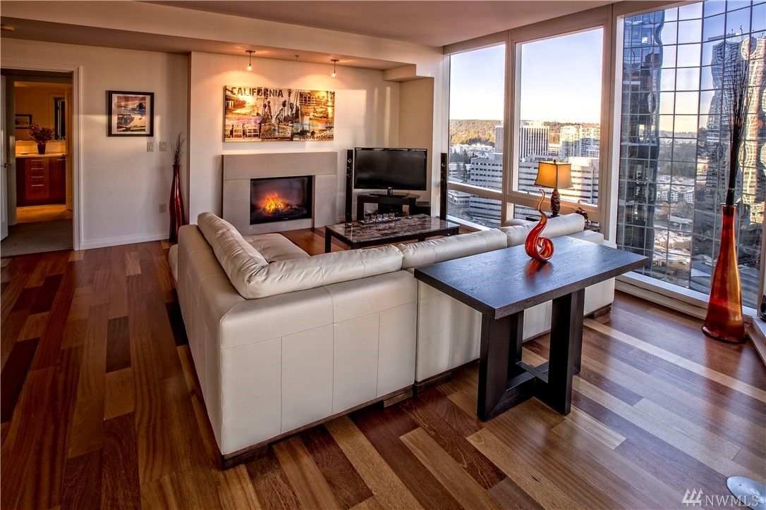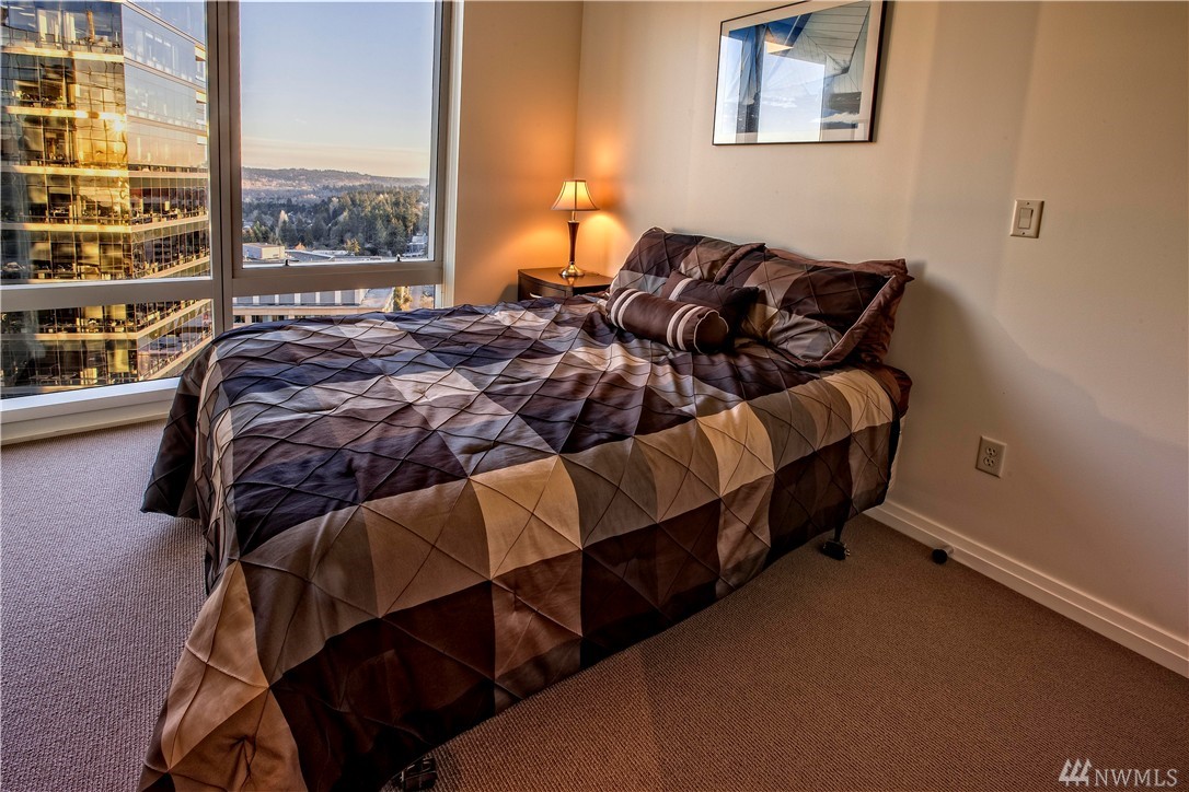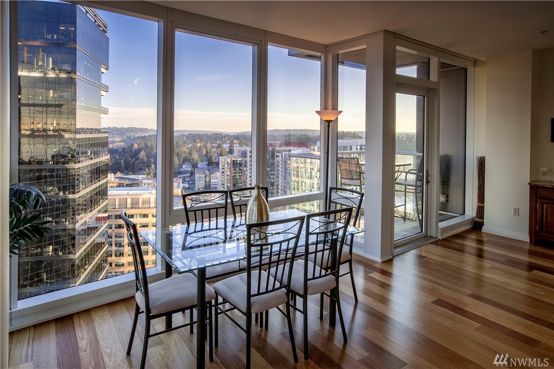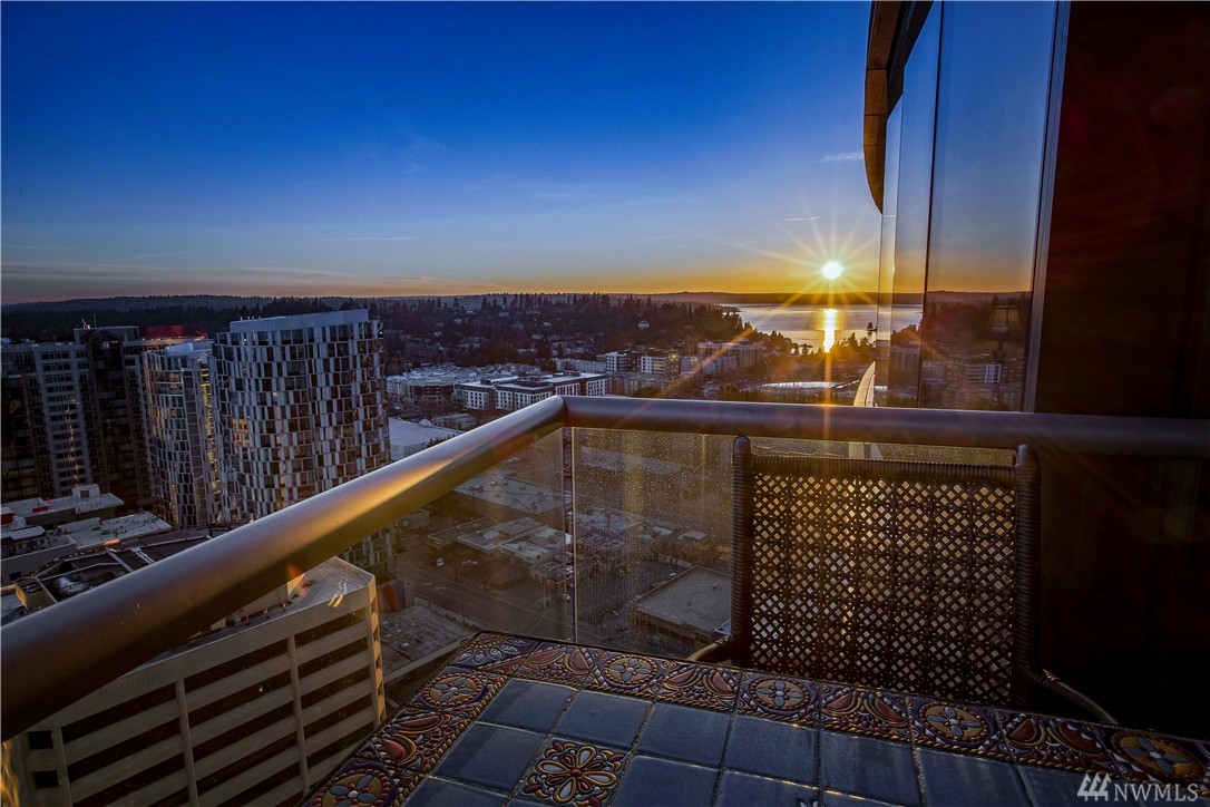 Twenty-Four floors up, this Bellevue Towers home is the best in Eastside living. This well thought out floor plan features 2 bedrooms and 1.75 baths, an entryway leads you to the spacious kitchen with breakfast island that opens to the main living area. Around the corner is a dining room and den. Large ensuite master with walk-in closet. Views of the Cascades & Lake Washington. The deck is perfect for watching day turn to night. Building amenities are second to none. Close to transit center.