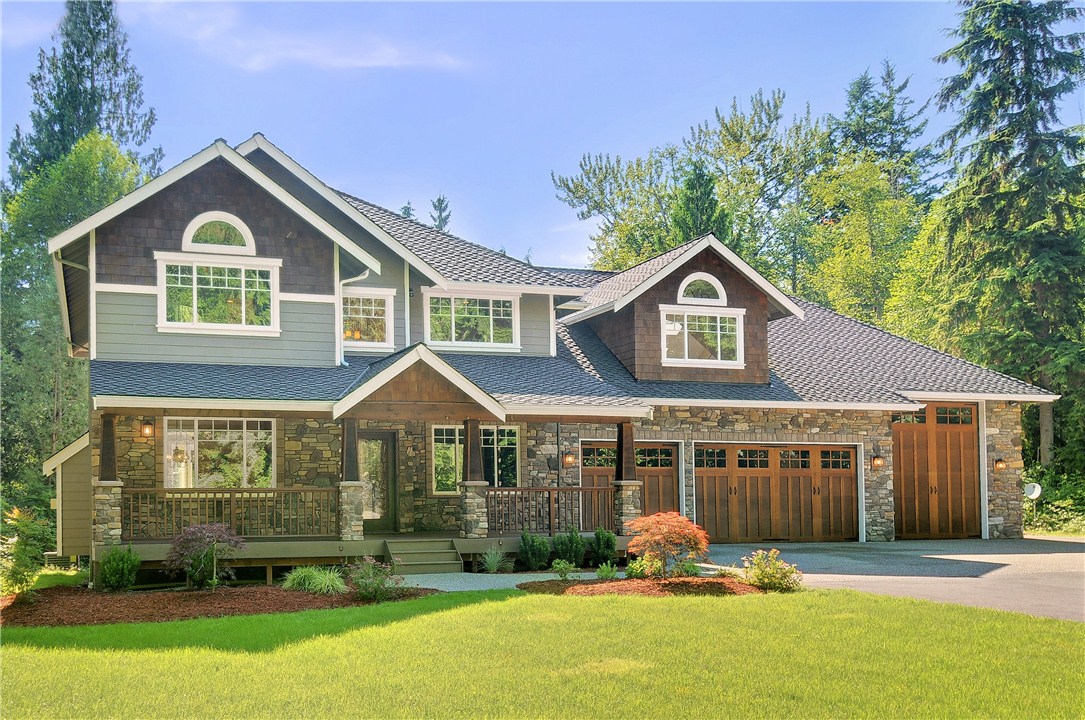 Custom Craftsman on a very private 5+ acres. 4 car garage w/an RV bay, 3/4 bath w/an extra finished rm. Main floor office w/built-ins, Cook's kitchen w/ss appliances, double ovens, gas cook top & granite slab counters. Open kitchen to family rm w/easy access to back yard deck featuring a hot tub & gas hook ups. Luxury master suite w/jetted tub, french doors, gas fp, private deck & large walk-ins. Indoor/outdoor 6 zone stereo system. Travertine flrs, slab granite & quality finishes throughout!