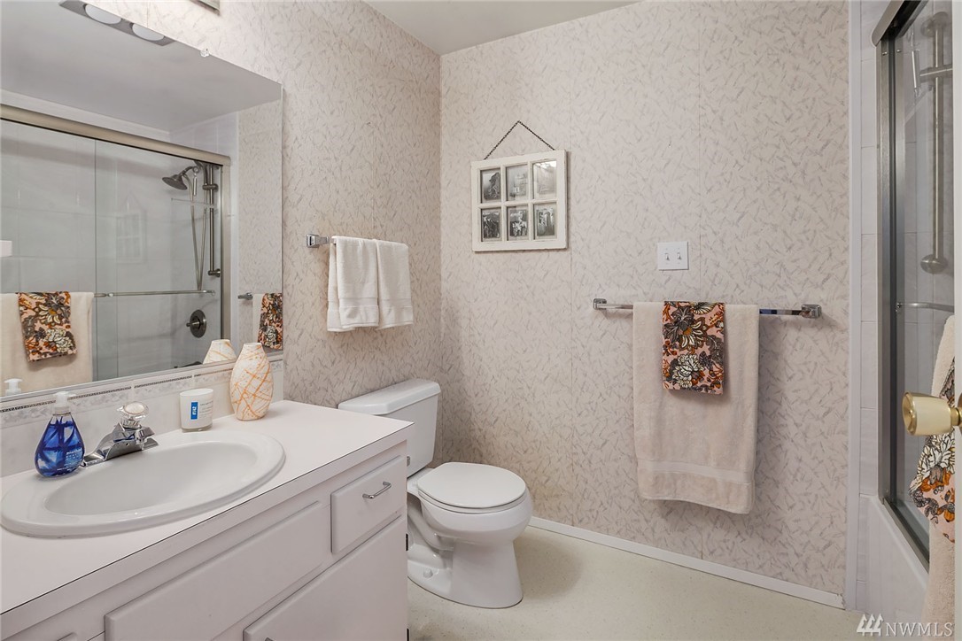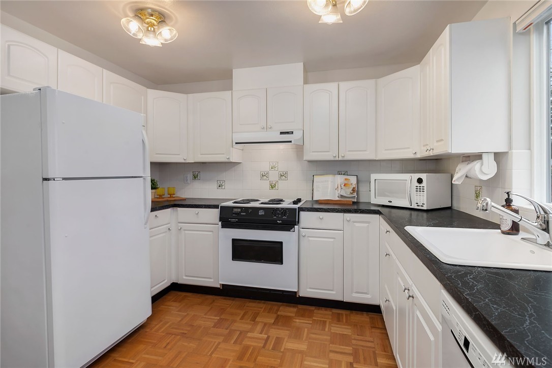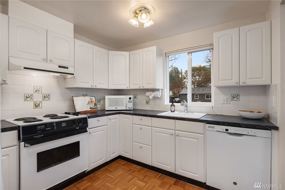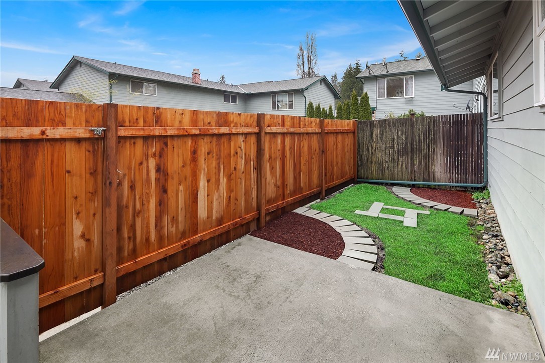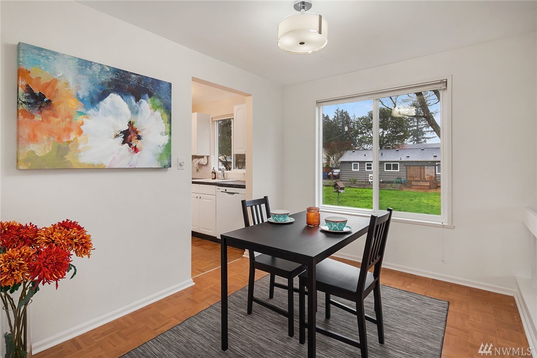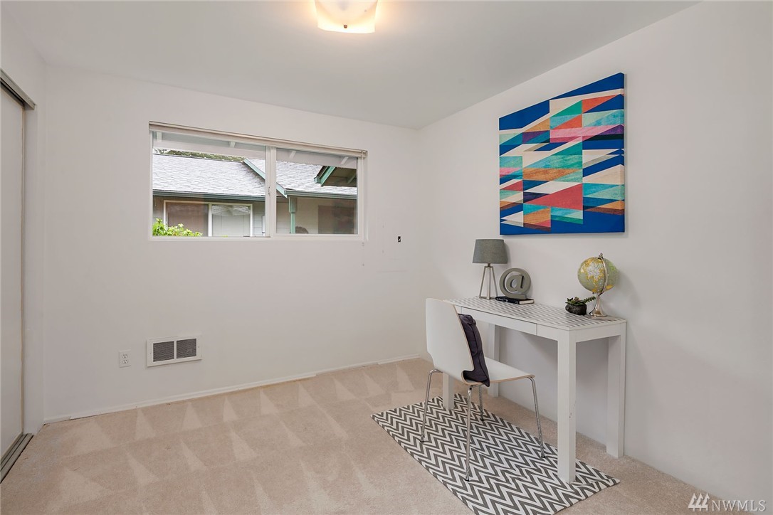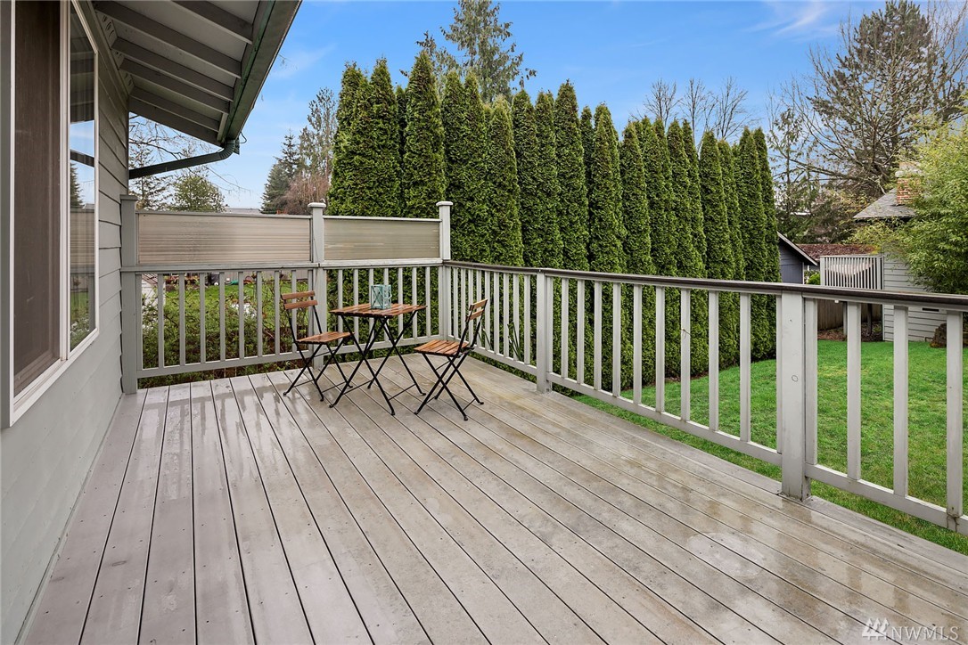 Retreat from the city in this charming & spacious 3-bed condo. End unit in quiet neighborhood. Hardwood floors throughout entry, hallway & dining room. Sunken living room w/ carpet & wood burning fire place. Glass sliders lead to private deck, patio & small yard. Guest bath has new shower/tub. Large bedrooms w/ windows allowing for natural light. Master bedroom offers ample closet space & fully renovated bath. Large 1-car garage & additional parking. Close to I5 & future light rail station.
