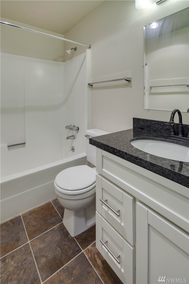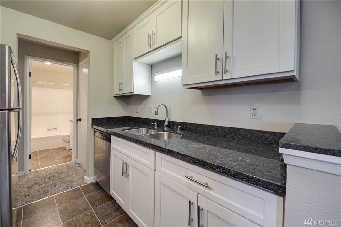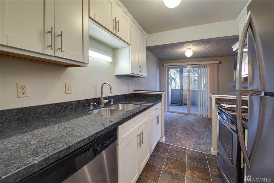 Completely move-in ready unit. New items include: carpets, paint, stainless steel appliances, kitchen and bathroom cabinets. Slab granite countertops in both kitchen and bathroom with undermount sinks. Close to shopping, freeways, bus line, King County Aquatic center.