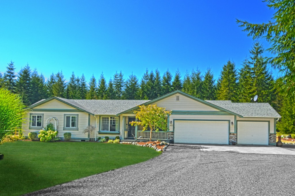 Prestine rambler on 5 secluded acres! Home features: 2,406 sq.ft. 3 bdrms, 2 baths w/ Beautiful laminate floors throughout. SileStone kitchen counters,stainless steel appliances. Kitchen opens to an 800sq.ft. family room with free standing propane stove. Formal dining room,living room with fireplace and bonus room.Wonderful floor plan that's great for entertaining! Gorgeous grounds Boast: 1728 sq.ft. shop, Barn with stalls & stables. 2 separate fenced pastures and much more..Peaceful & Stunning!