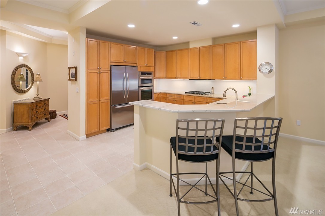 Elegance meets the good life at one of Kirkland’s premier buildings. Walking distance to Lake Washington, amazing dining, & all Kirkland has to offer. Immaculately maintained & updated – chic kitchen w/quartzite counters & Fisher&Paykel gas range. Open concept for today’s modern living, as well as an amply sized covered balcony, accessible via the living room & master bedroom. 2 beds+den, plus 2 secured parking spots. High ceilings & clean lines as well as California closets. Great opportunity!