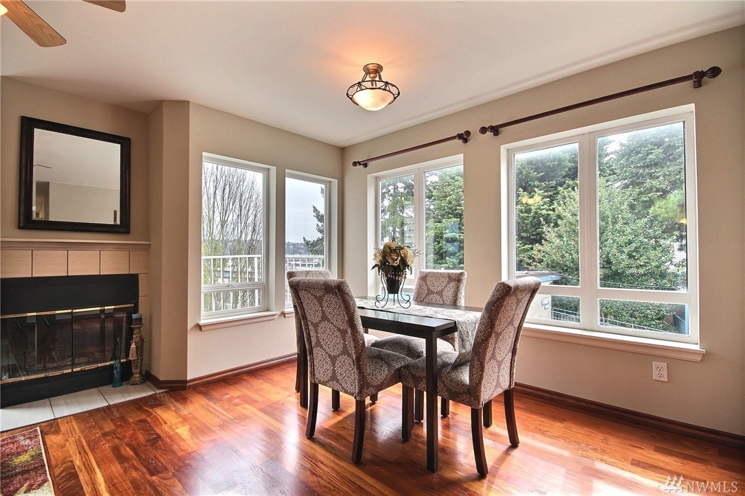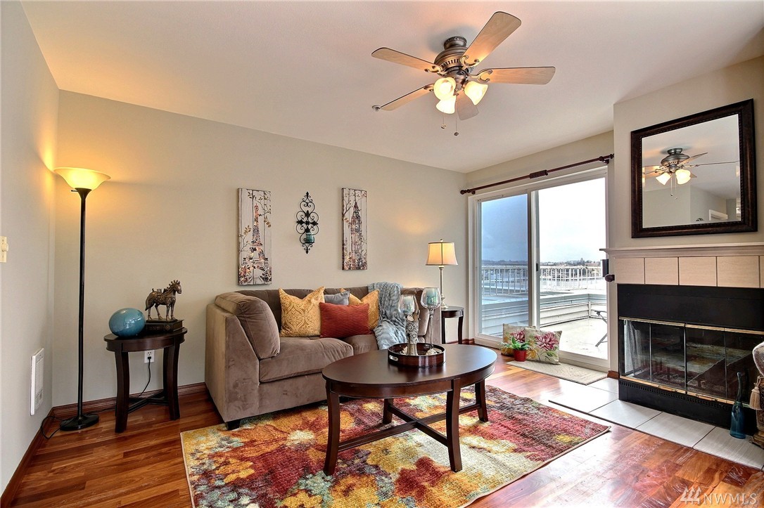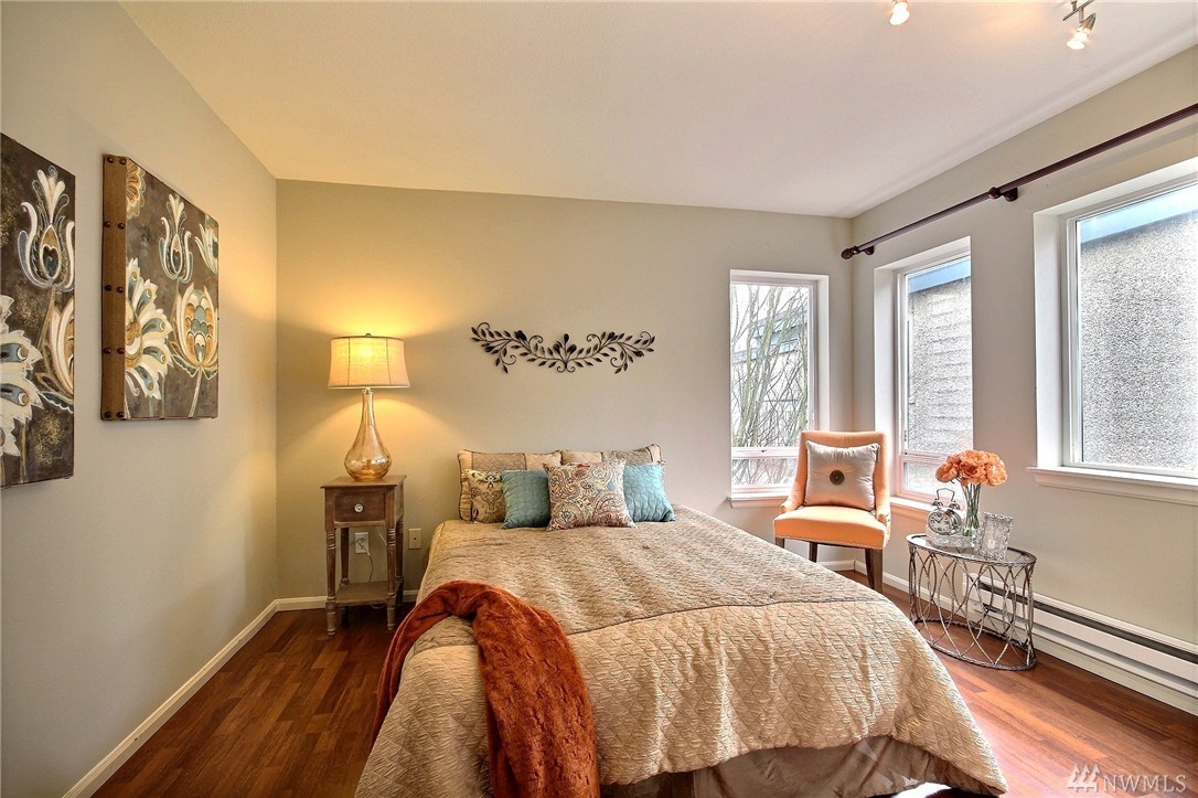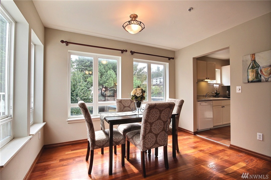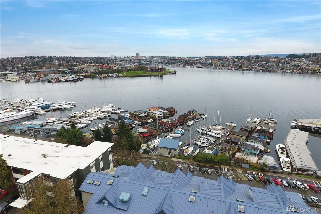 Two levels of sophisticated living presents rich flooring, style galore. Enjoy dynamic, ever-changing views from roof-top deck by day or night: Lk Union, Gas Works Prk, Cascades, city skyline and beyond. Enter on lower level which offers two bdrms, full bath. Light-filled upper living spaces, galley-style kitchen features SS accents, polished countertops; all applcs stay! Garage prkg, storage. Walking distance to South Lk Union, shops/bistros of Queen Anne, Fremont, Ballard. Blocks to transit.