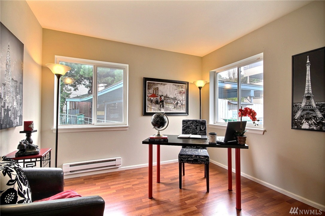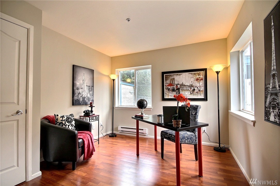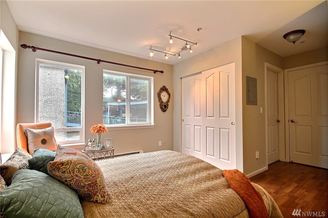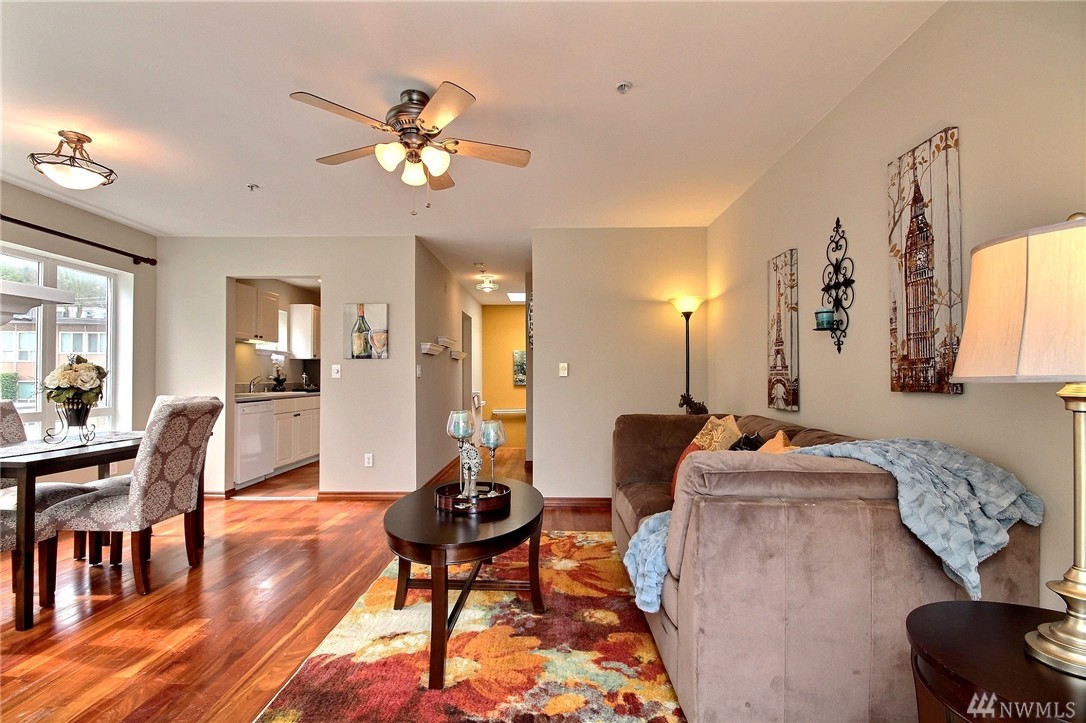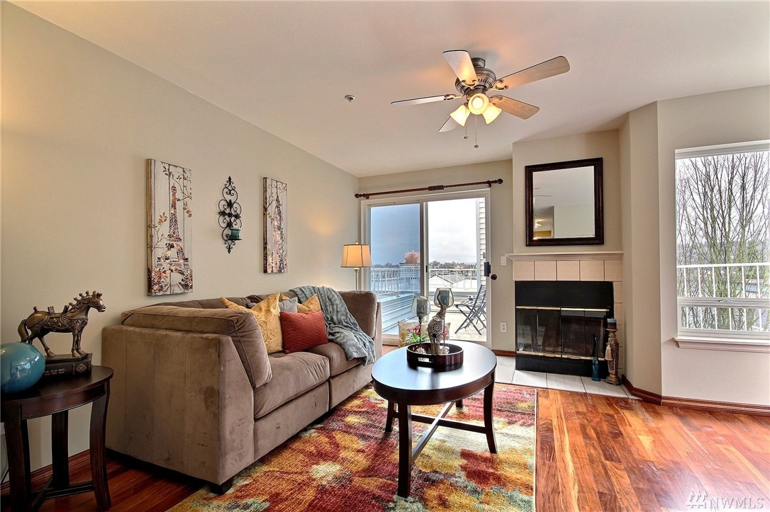Two levels of sophisticated living presents rich flooring, style galore. Enjoy dynamic, ever-changing views from roof-top deck by day or night: Lk Union, Gas Works Prk, Cascades, city skyline and beyond. Enter on lower level which offers two bdrms, full bath. Light-filled upper living spaces, galley-style kitchen features SS accents, polished countertops; all applcs stay! Garage prkg, storage. Walking distance to South Lk Union, shops/bistros of Queen Anne, Fremont, Ballard. Blocks to transit.