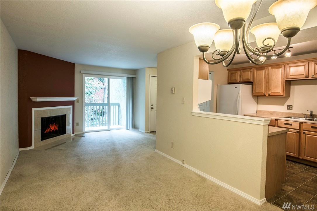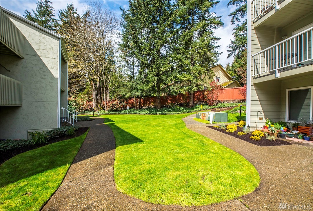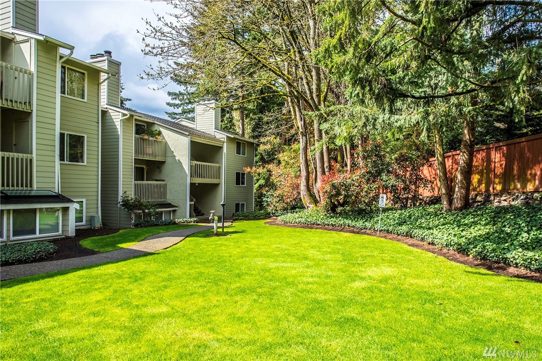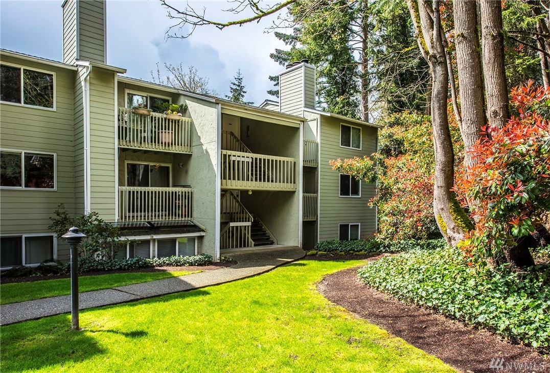 Picture perfect two bedroom flat in The Redwoods, steps to downtown Redmond and all that it has to offer with it's charming restaurants and vibrant sense of community. Meticulously maintained and move in ready! End unit with small patio for summer entertaining. Wood burning fireplace in the great room. One covered parking spot plus additional visitor parking. This would be ideal for the first time home buyer or savvy investor.