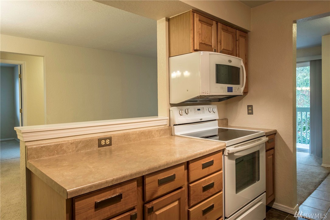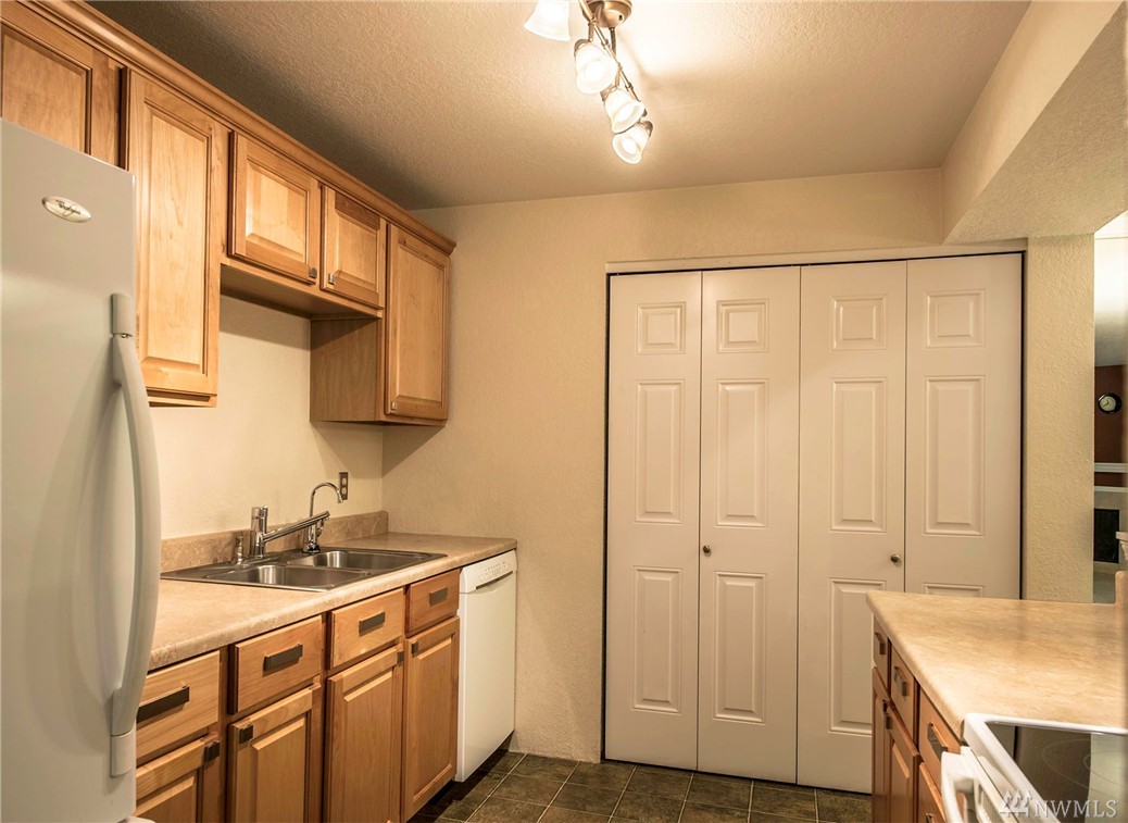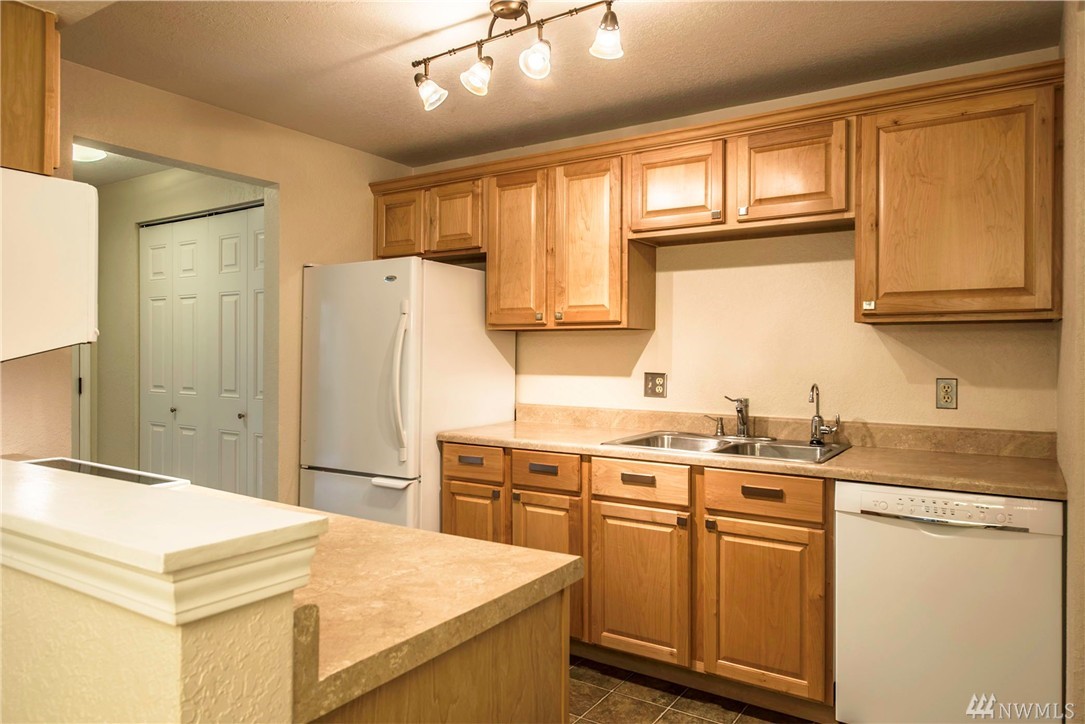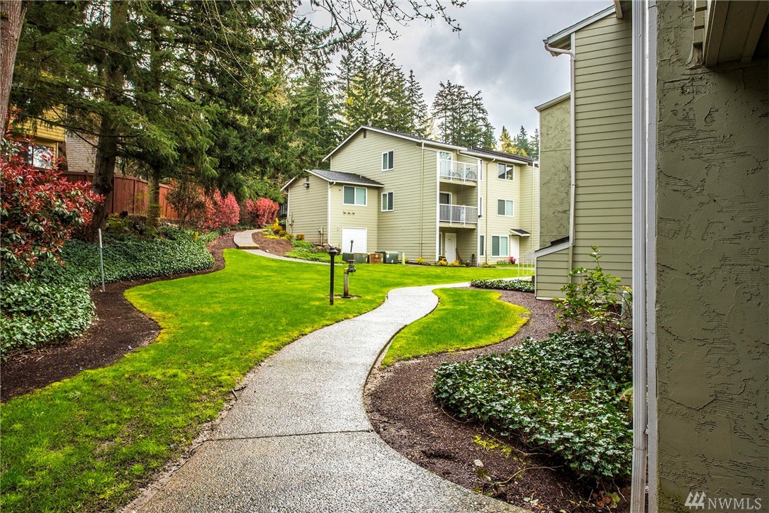 Picture perfect two bedroom flat in The Redwoods, steps to downtown Redmond and all that it has to offer with it's charming restaurants and vibrant sense of community. Meticulously maintained and move in ready! End unit with small patio for summer entertaining. Wood burning fireplace in the great room. One covered parking spot plus additional visitor parking. This would be ideal for the first time home buyer or savvy investor.
