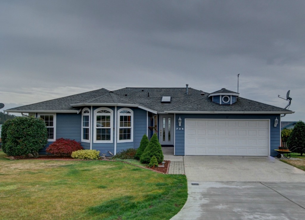 Sunrises start your day! Fabulous views of Mt/water/shipping lanes from this 3BR/2BA. Open/vaulted/light 1 level living, views from all main rooms! Huge view master suite, sunroom/library opens to large deck for morning coffee! Formal Travertine, skylight entry, vaulted living, warm fireplace, large kitchen, granite counters, pantry, greatroom concept, dining & family room to deck for BBQ & relaxing! Fenced! Privacy of 3 lots! 2 car garage, shop, RV space! Enjoy community club & walks on beach!