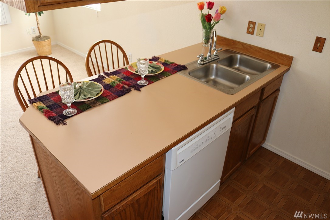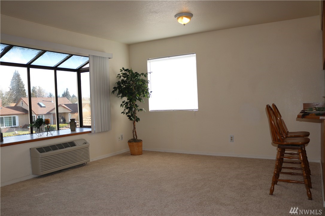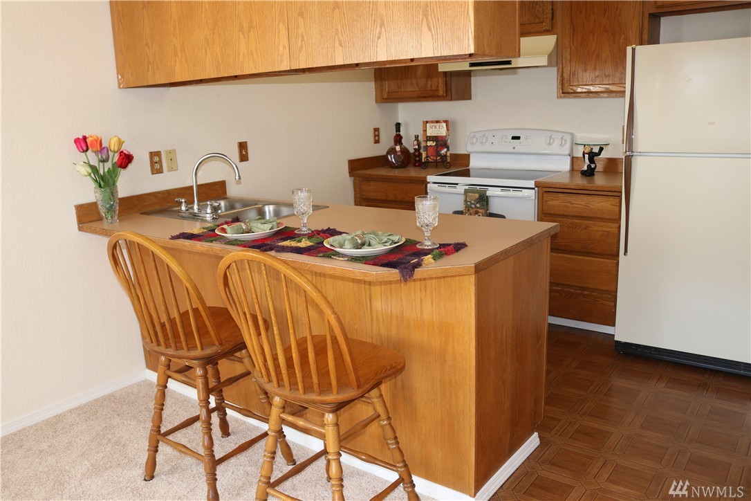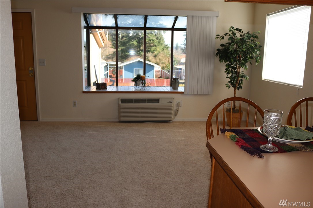Enjoy the convenience of local shopping & restaurant's within walking distance. This spacious 1 bedroom condo includes a private deck, full bathroom, top floor end unit that is located in the heart of Marysville. New tile entry plus new carpet and bathroom sink. All appliances are included. Heat pump provides air conditioning for those warm summer days as well as heat for the cold winter nights. Enjoy the partial mountain view from you window seat at your large bay window.