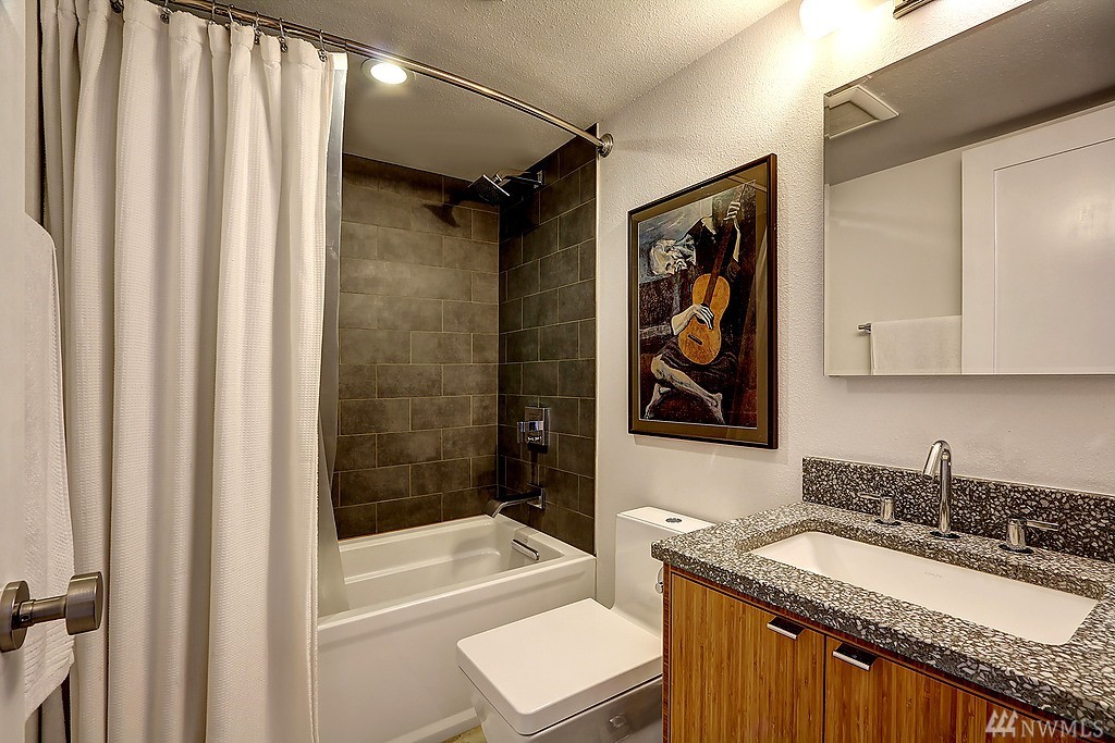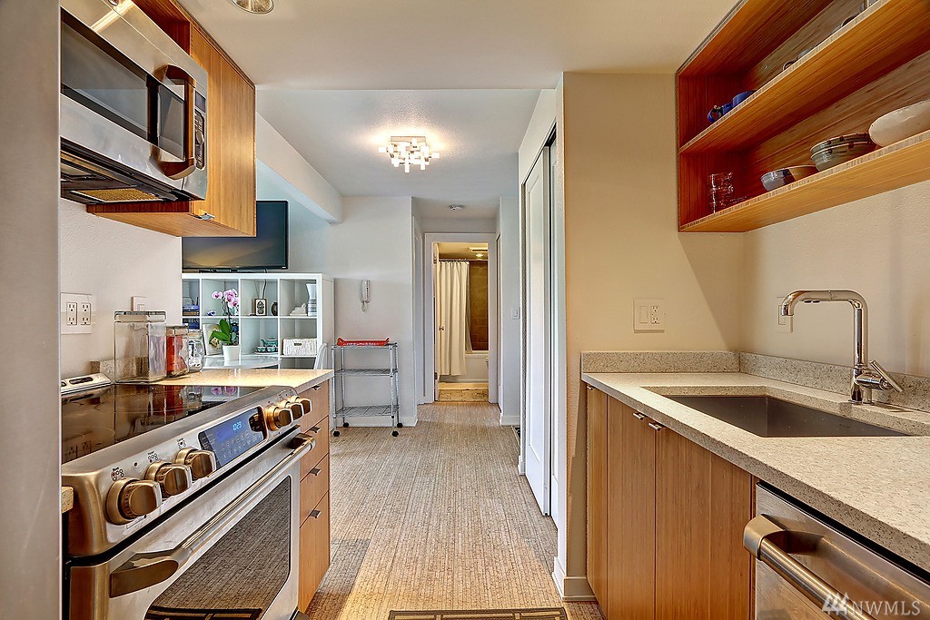 Great East slope location! Newly remodeled with eco-friendly finishes for a light and bright open floor plan with Wicanders cork floors, Lutron Whole Home wifi enabled lighting system. Custom kitchen designed by Gauge Design Group w/ energy efficient stainless steel appliances, Novustone recycled glass countertops and more. Very luxurious in-city pied-Ã -terre! Remodeled to exceed LEED specifications. Views of city skyline and a Walkscore of 85.easy access to downtown, Lake Union & Freeway.