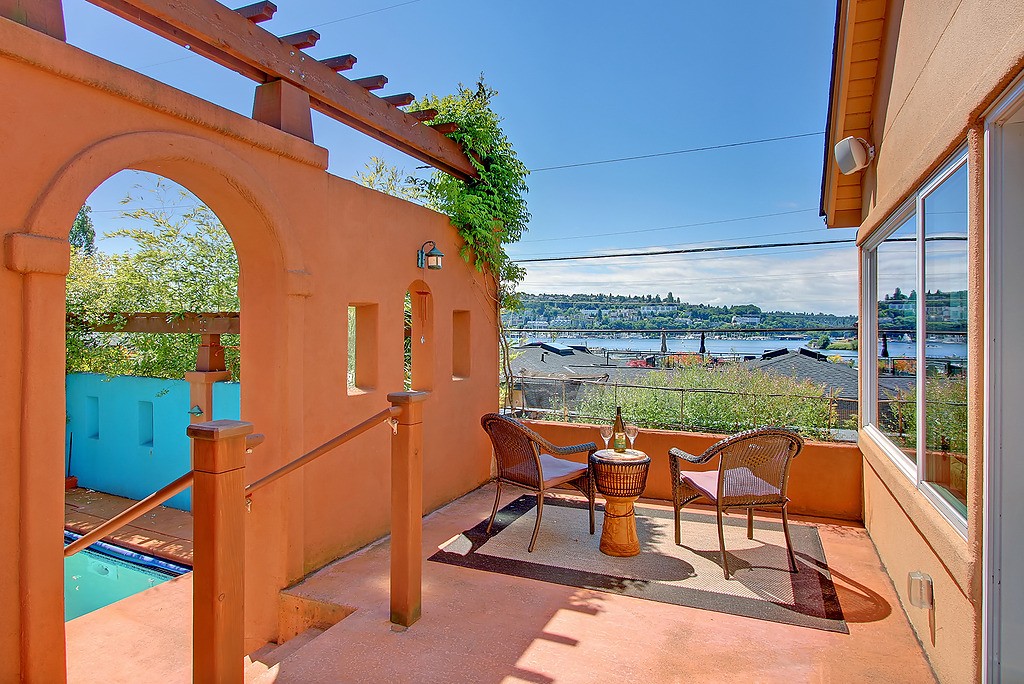 Urban oasis in the heart of Eastlake! Unobstructed views of Lake Union, Gasworks Park, Space Needle & the Olympics make this a rare in-city retreat! A beautiful gated entrance opens to a professionally landscaped courtyard, & entertaining patios complete w/3 tiled cascading fountains culminating at the resistance swim jet pool & integrated hot tub. Features include a gourmet kitchen, private master suite, state of the art media/stereo systems, 2-car garage +3 extra off-street parking spaces.