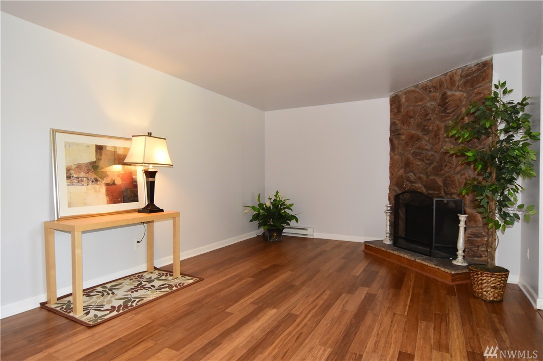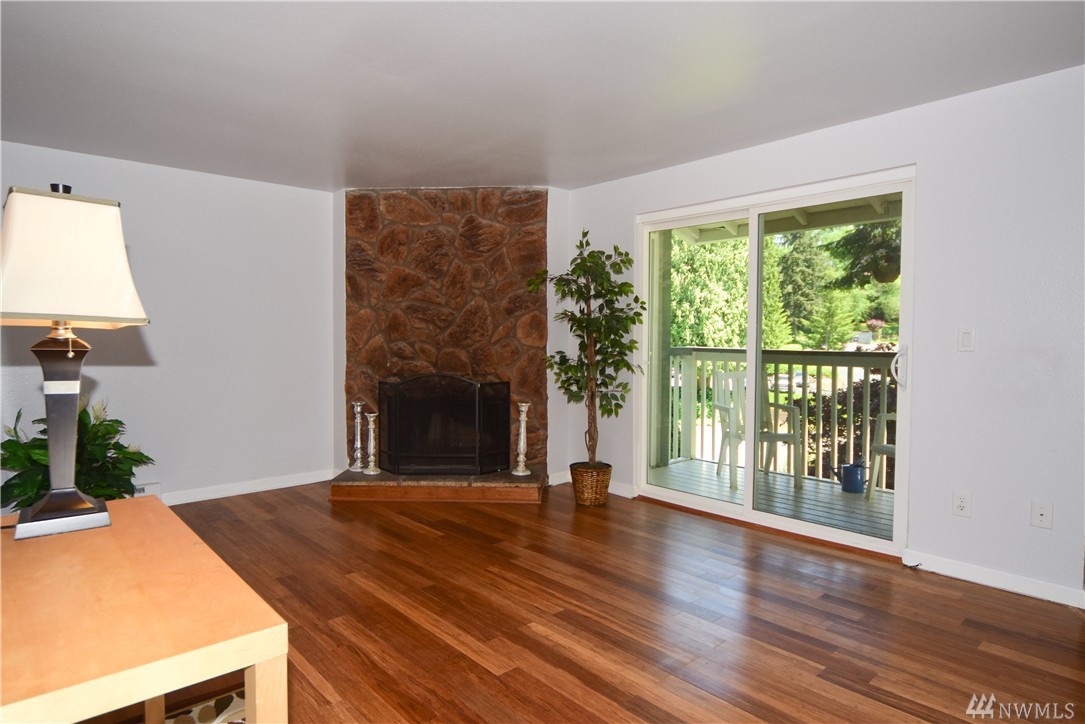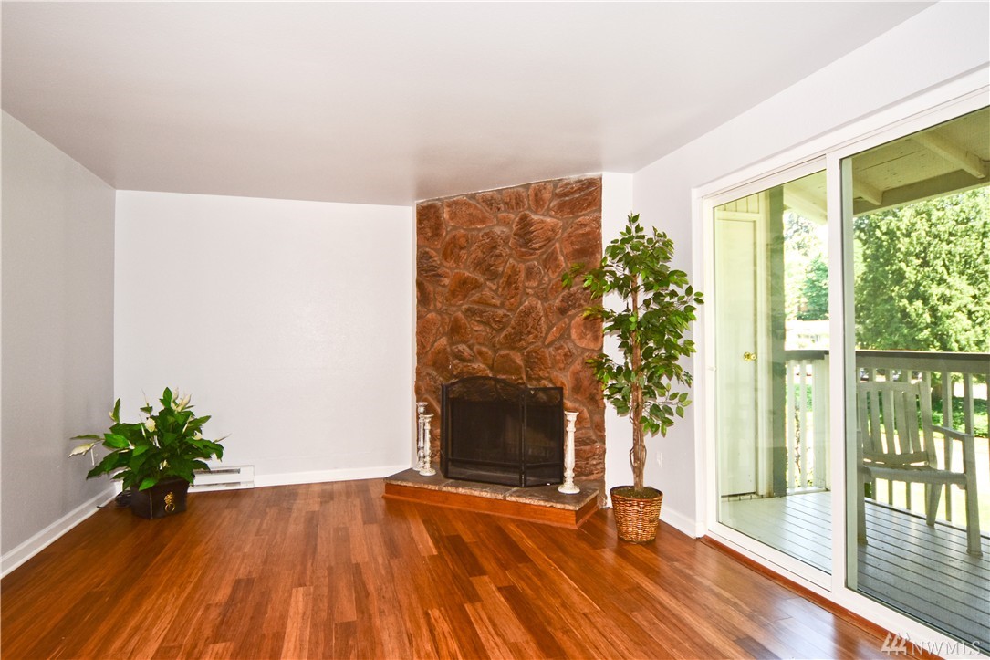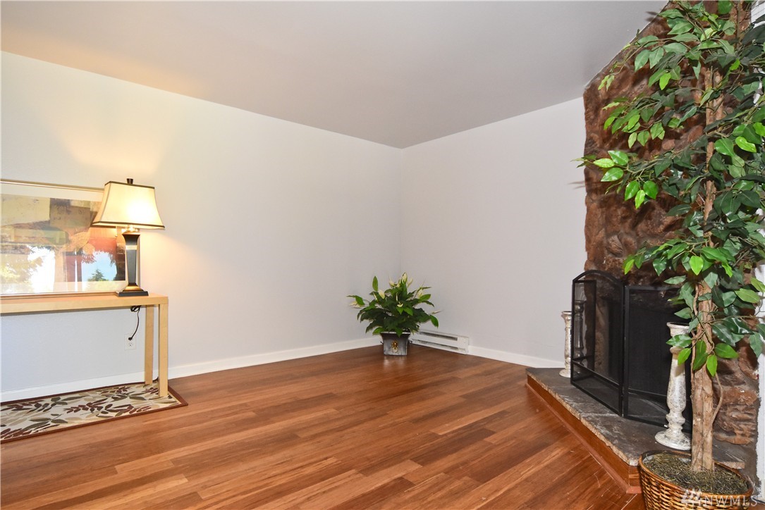 Move-in ready, cute & updated 2bed condo available at center of Federal Way! Top floor, Tile entry, view of community yard, Fresh paint, Hdwd flr through out, updated bathrm w/tile flr, Master has walk-in closet, Living rm w/a cozy fireplace(surrounding deco larva stone up to ceiling), Kitchen w/accent granite countertop, Dining rm, slider to deck & storage, All appliances stay, W/D in unit. Outdoor pool, club house & athletic court. Close to Hway, shopping, park & community centers. Must see!