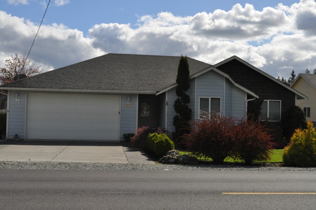 Quality construction. Ceramic entry, living room with vaulted ceilings, gas fireplace & extra large concrete patio off slider. Extra large fully fenced backyard. Kitchen with quality cabinetry, bay window off dining area & hardwood floors in kitchen & dining area. Gas range & gas hook up for dryer, spacious walk in master closet, gas forced air heat & heat pump. Garage door is 8 ft high. 16 x 12 shop w/covered overhang. Greenhouse and great yard for gardening.