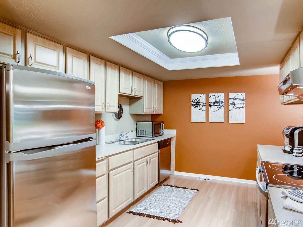 Spacious and inviting 2BD, 2Bath ground floor unit in prime Kirkland/Juanita Beach location. Walking distance to Juanita Beach waterfront park and Juanita Village. Enjoy the updated building with all new siding, windows, paint, and landscape in 2014/15. Unit has new furnace, updated bathrooms, a wood fireplace, and private patio. Includes private garage plus an uncovered parking spot. No rental cap!