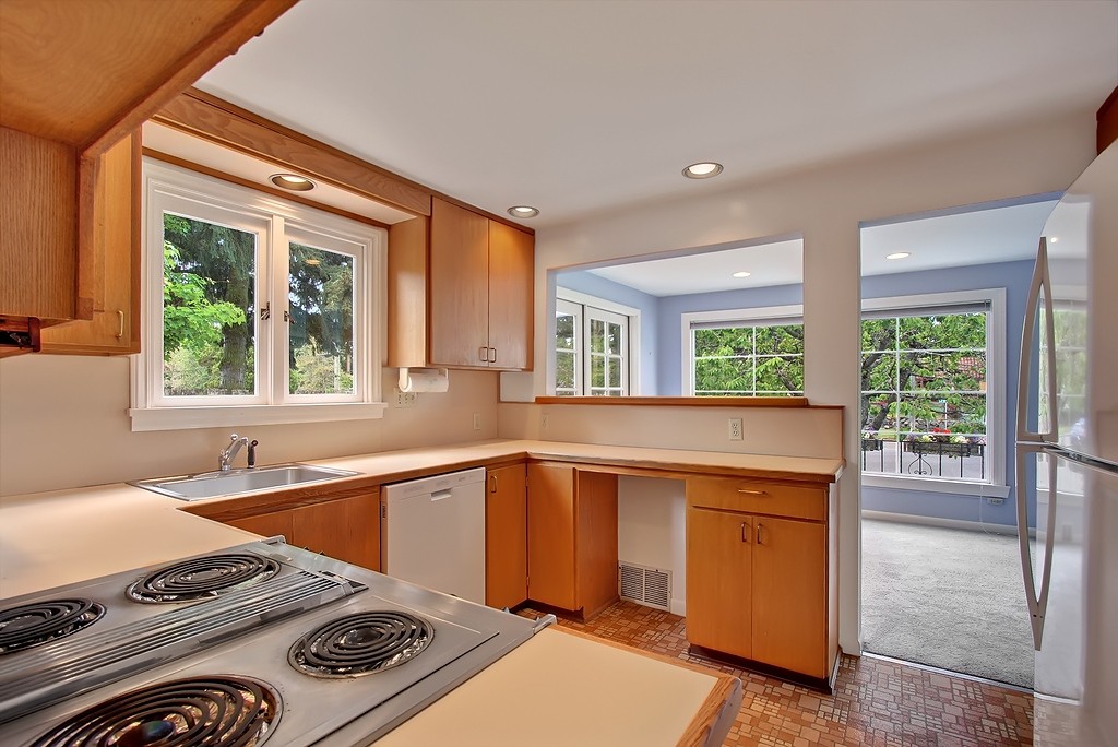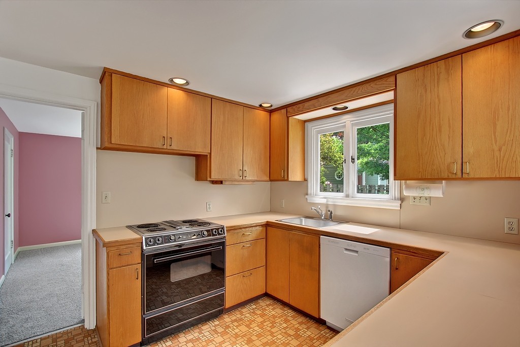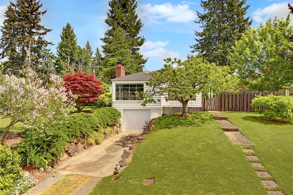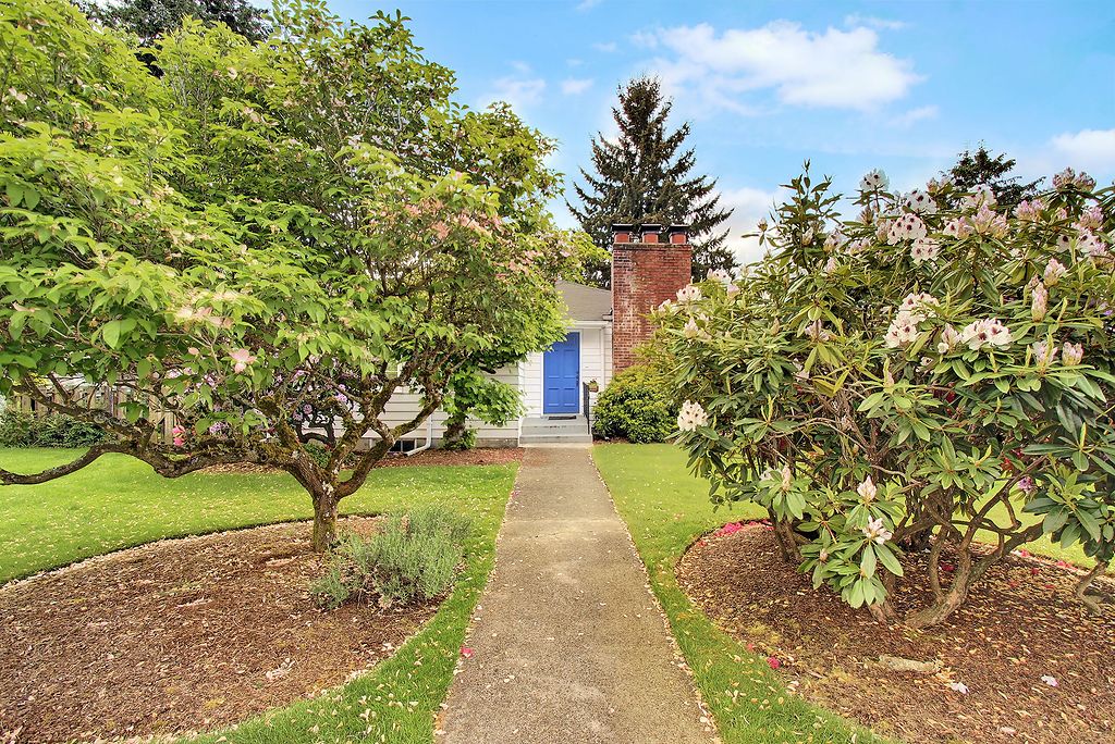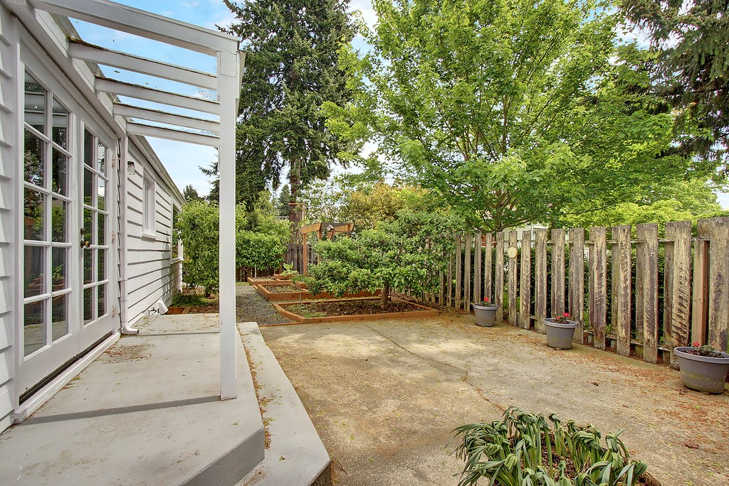 A charming craftsman in Victory Heights on an oversized corner lot across from the Community Park. 2 beds, 1 bath, a sizeable living/dining room on the main level with approx. 900sf of unfinished basement along with an oversized 1 car garage and utility room. Bright, open, spacious kitchen and living areas w/French doors opening to fenced backyard/patio. Newer double paned windows, new carpet, and fresh paint make this home move in ready. Convenient location near all amenities/bus lines/I5.