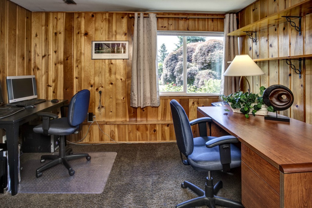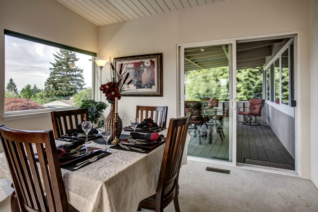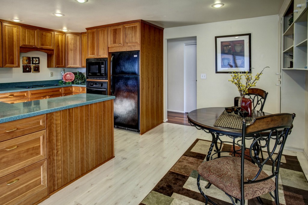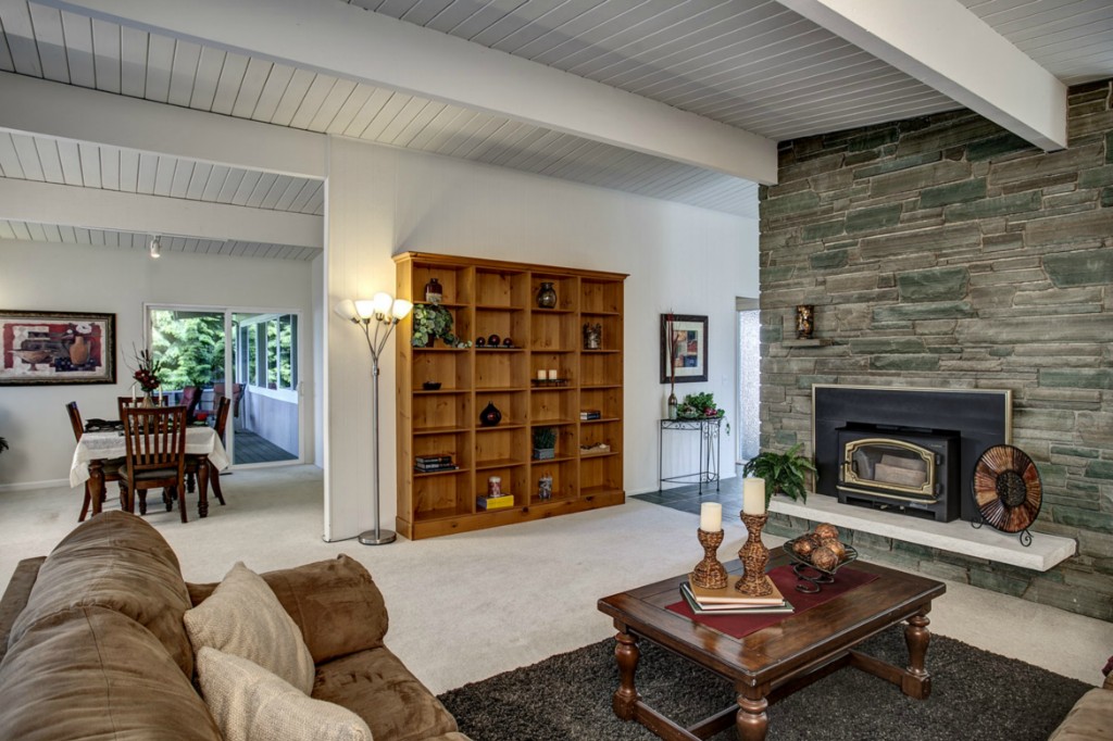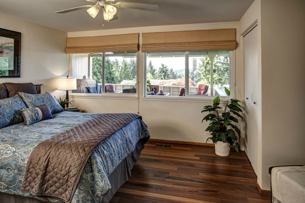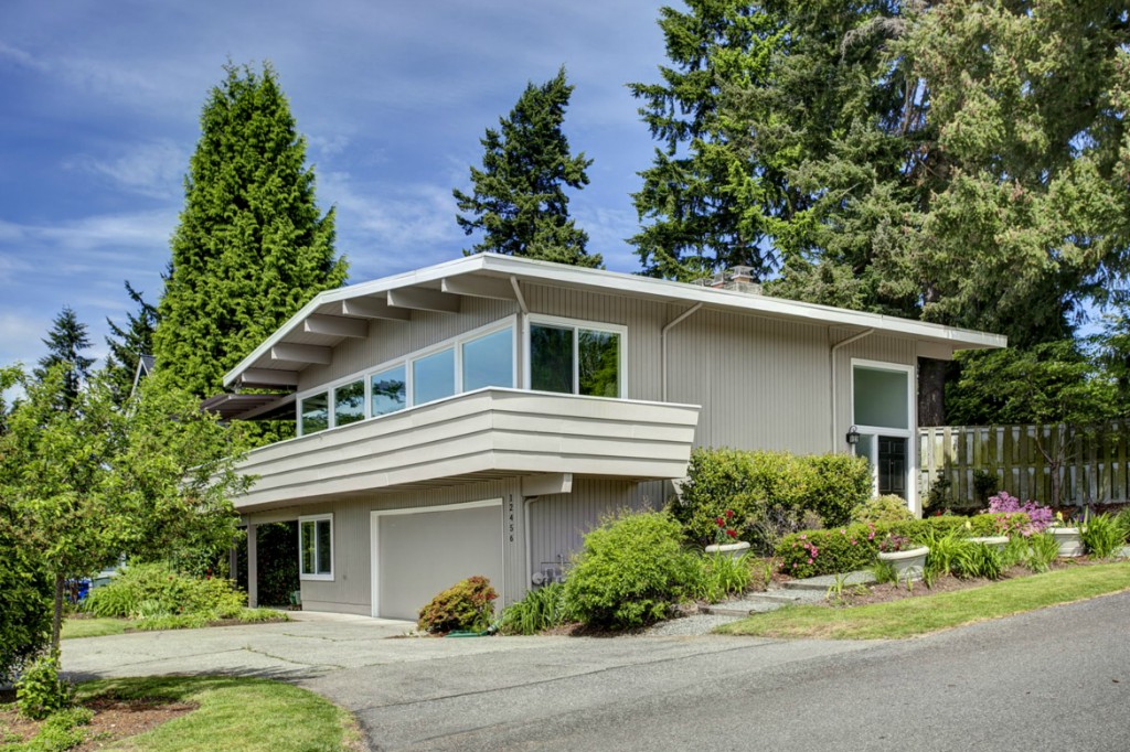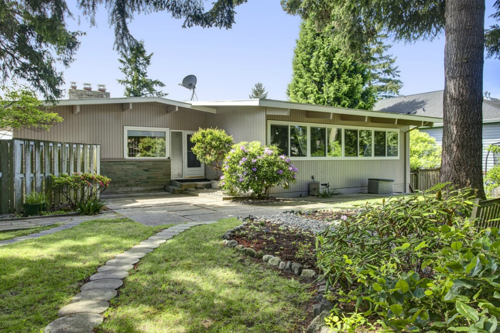 Room with a view! Mid-Century Modern in the heart of Bellevue. Excellent location, schools, easy commute everywhere from here. Remodeled kitchen with cherry cabinets, corian counters, newer appliances. Pre-finished Tiger Wood floors installed throughout the upper level. Freshly painted exterior in 2011, newer dual pane windows. Roof resealed by Anderson in 2012. Wake to stunning views southwest over Lake Washington. Character! Newer carpeted lower level. Wonderful garden yard! Just perfect!