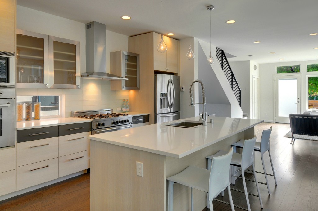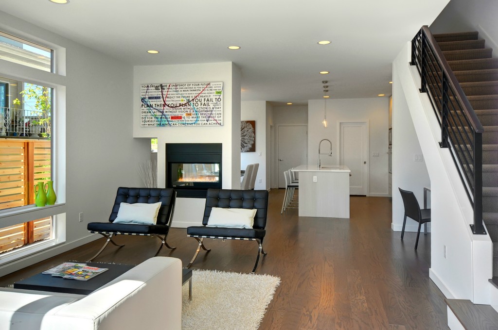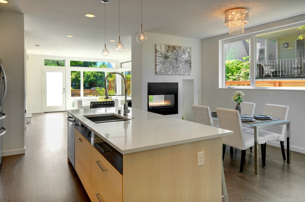 Striking modern home by premier builder Isola Homes. Bright southern exposure. Open living area & kitchen with custom Abodian cabinets, quartz counters, Bertazzoni range & stainless appliances. Dual sided gas fireplace in living room. Sumptuous master suite w/ walk-in closet, dual headed shower. 3rd floor bonus room w/ wet bar and lovely sound and mountain views plus roof top deck. Built Green Constr. Easy walk to Admiral restaurants, shopping, busline, and minutes to Alki & Downtown Seattle.