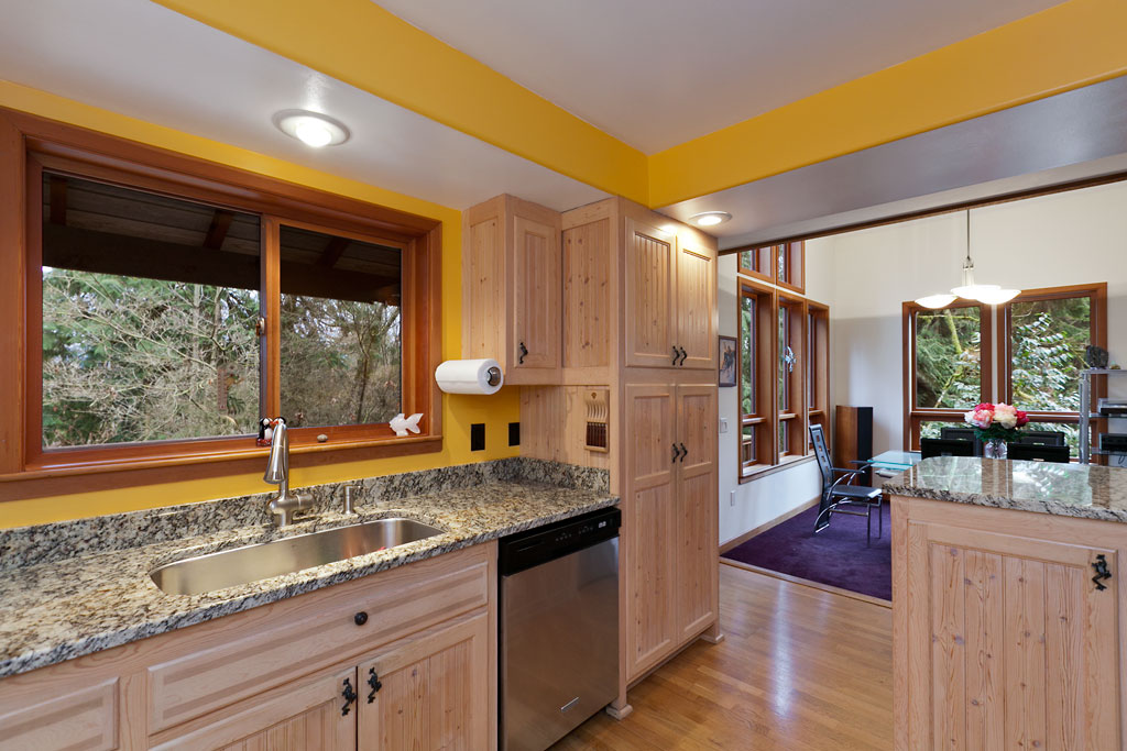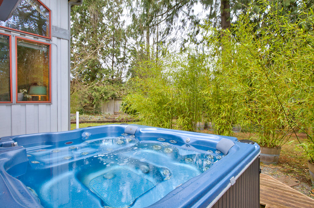 Stunning NW contemporary is beautifully sited on a totally private 1.3 acre lot. Lofty vaulted ceilings & soaring windows create bright, sunny spaces. Fabulously appointed with a gorgeous new kitchen with granite counters & top notch appliances; sleek new master bath has a double shower, new front & back doors with etched art glass, in-floor radiant heat, metal roof, private hot tub & so much more. Every detail is beautifully done. Unique and ultra-cool house--don't miss it!