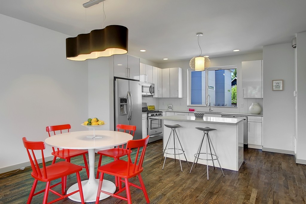 Stylish new modern Row House located in vibrant Fremont/ Ballard neighborhood. 4 Star Built Green designed for style, comfort & energy efficiency. Quality craftsmanship throughout with attention to every detail. Open concept floor plan is flooded with natural light, has beautiful hardwood floors & sleek steel railings. Island kitchen with top of the line stainless appliances & gorgeous tile accents. Enjoy Urban living close to restaurants, shops & all Fremont has to offer!