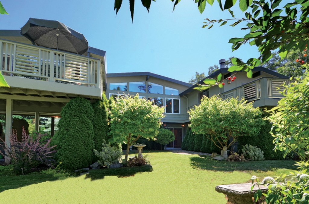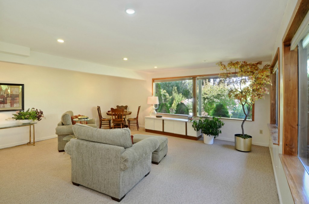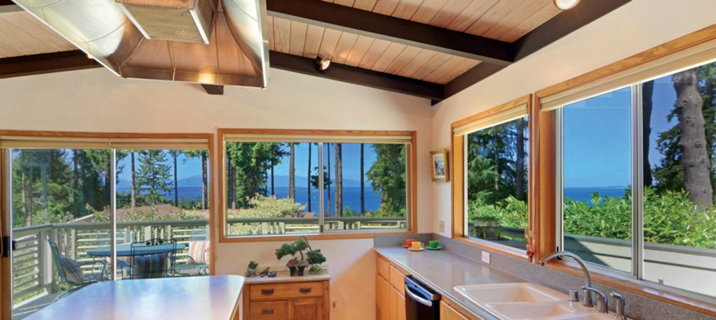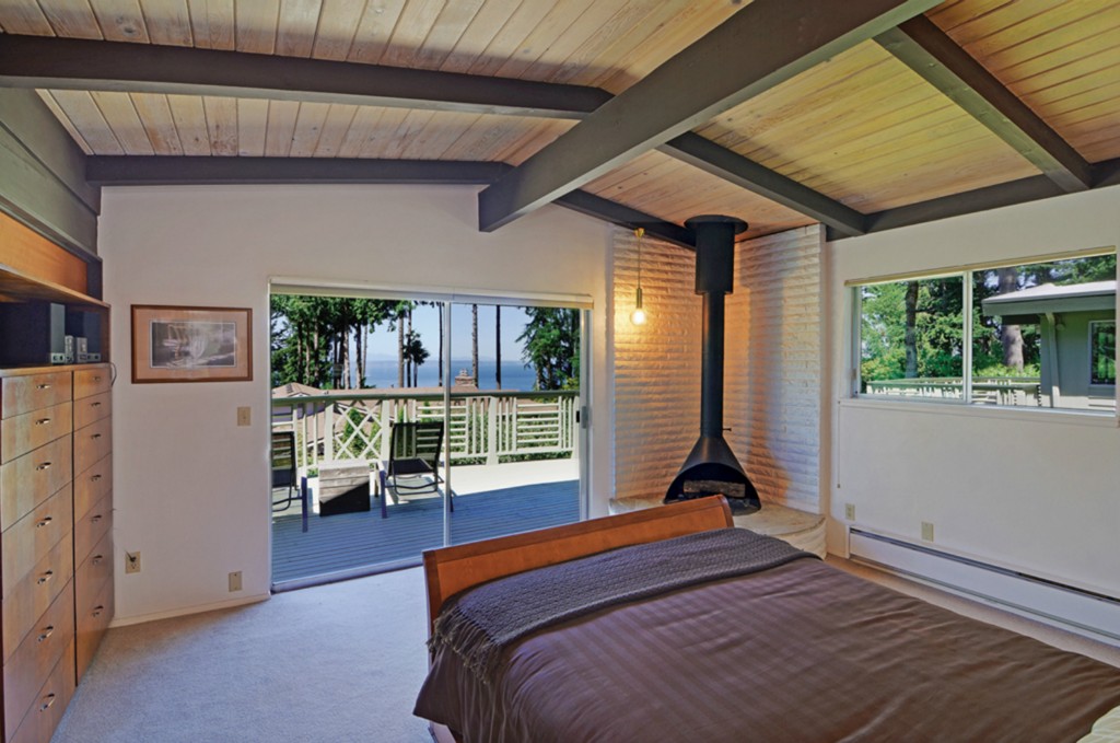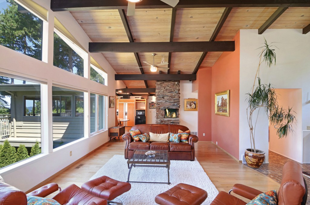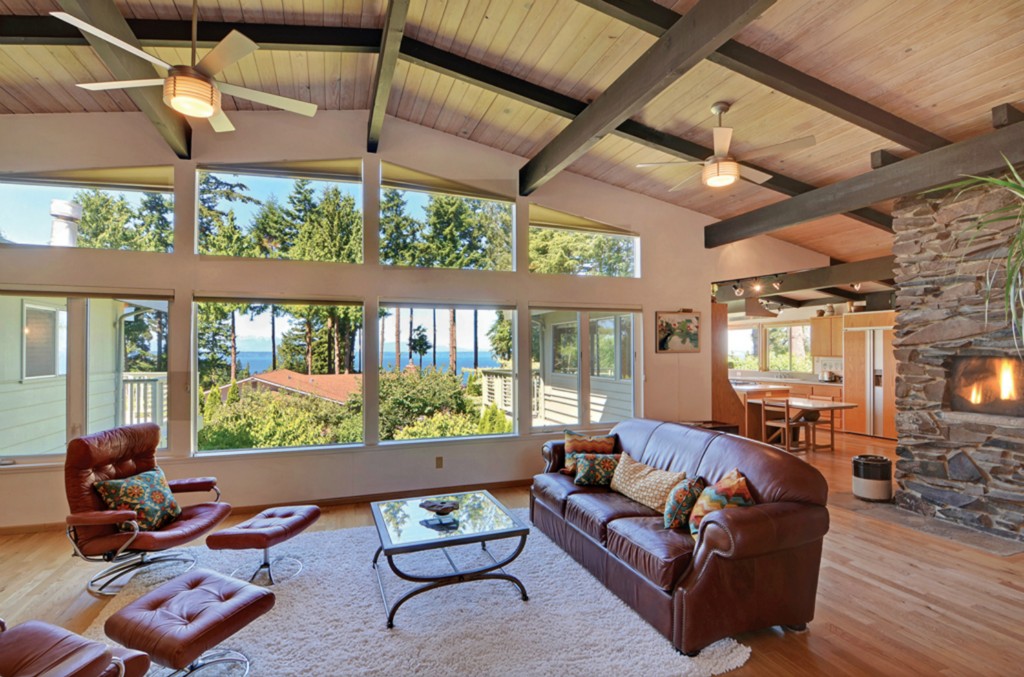 This architecturally stunning home spreads its wings to capture Sound and Mountain views. Clerestory windows embrace the sun and soak the open floor plan with light. Four wood burning fireplaces and a built-in outdoor barbeque area remind you of those groovy spaces of the 60’s. Two view decks and additional private space allow plenty of relaxation. Large garden level with media room and access to professionally landscaped yard. Perfect!