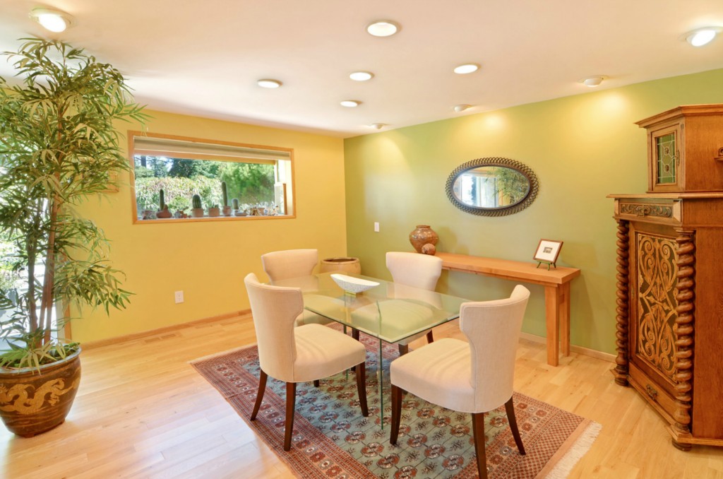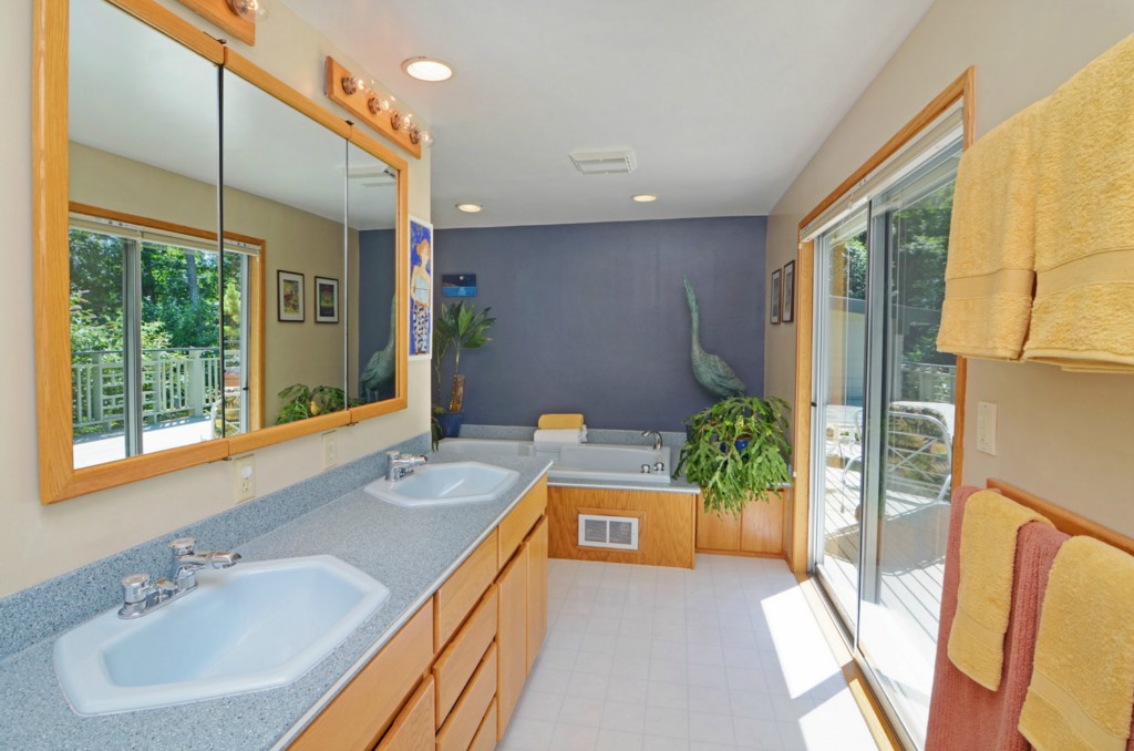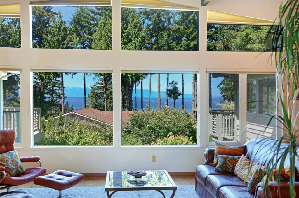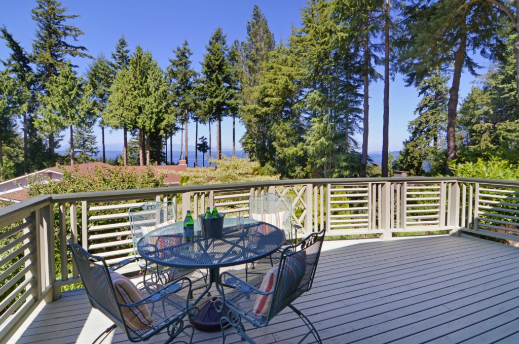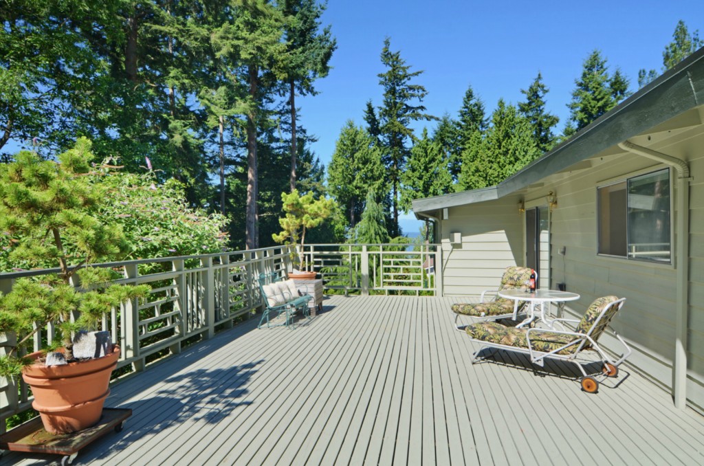 This architecturally stunning home spreads its wings to capture Sound and Mountain views. Clerestory windows embrace the sun and soak the open floor plan with light. Four wood burning fireplaces and a built-in outdoor barbeque area remind you of those groovy spaces of the 60’s. Two view decks and additional private space allow plenty of relaxation. Large garden level with media room and access to professionally landscaped yard. Perfect!