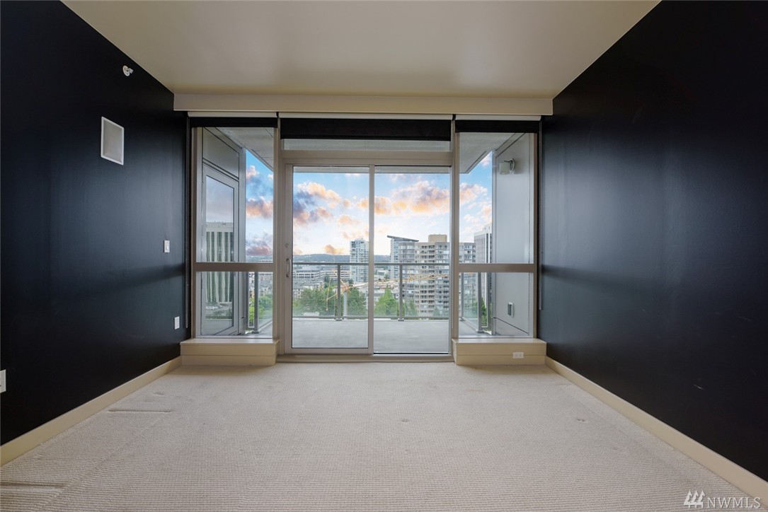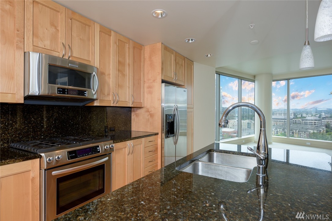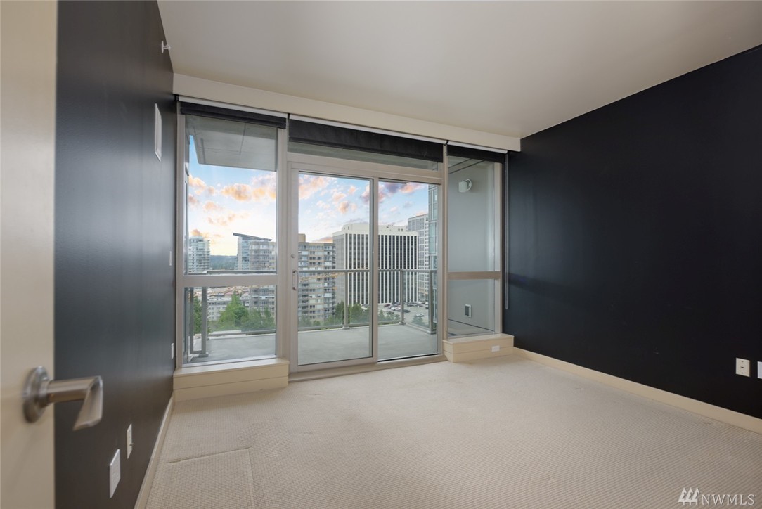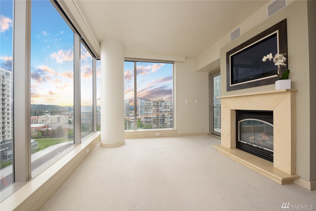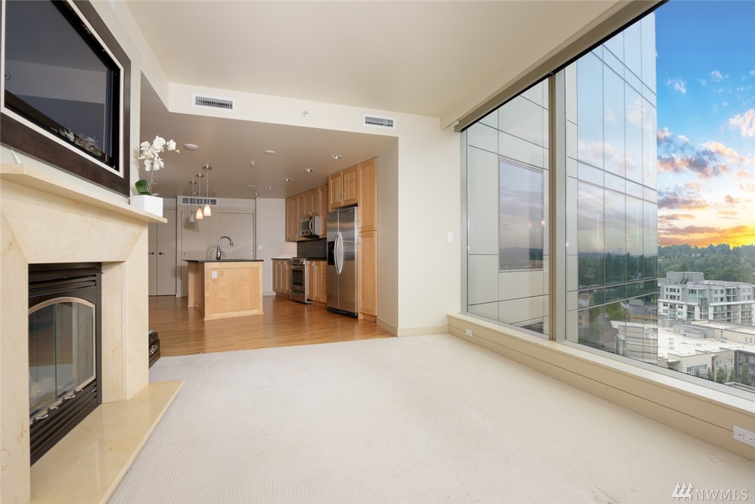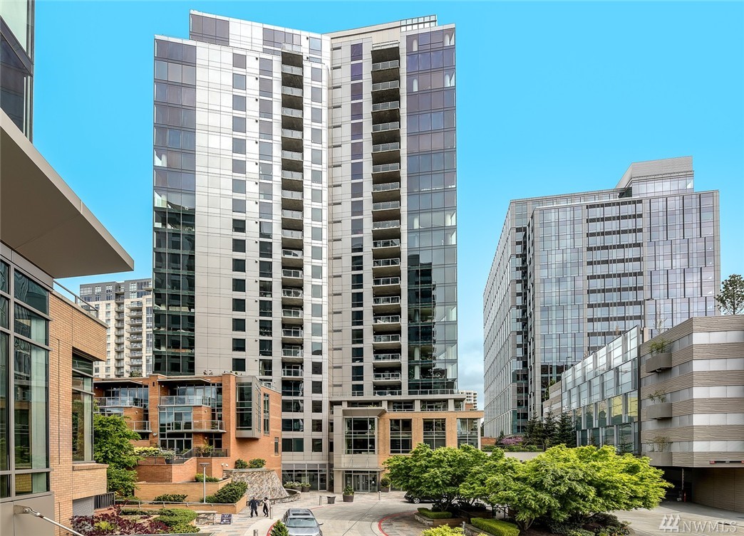Great WASQ tower 2 . This NE facing 1 bedroom, 1 bath corner unit features brand new carpet, offset master bedroom, private balcony, floor-to-ceiling windows, built in privacy shades, imported hardwood floors, granite counters, gas fireplace, a fiberoptic line to residence and central air condition and heating. Amenities include 24-hour concierge, massage rooms, spa, owners lunge with chef’s kitchen and fitness facility, near transit center, Bellevue library, retail shopping, restaurants & more!