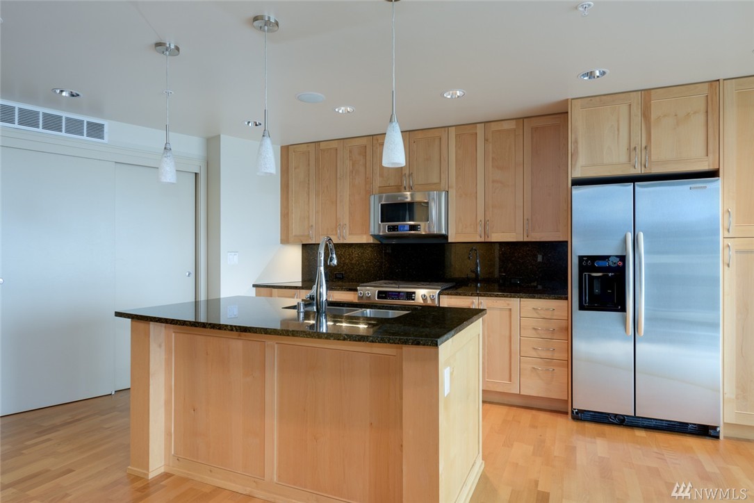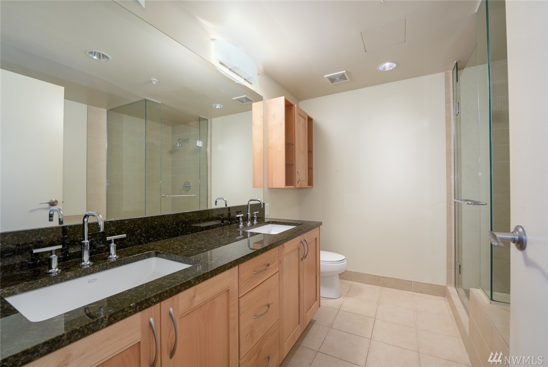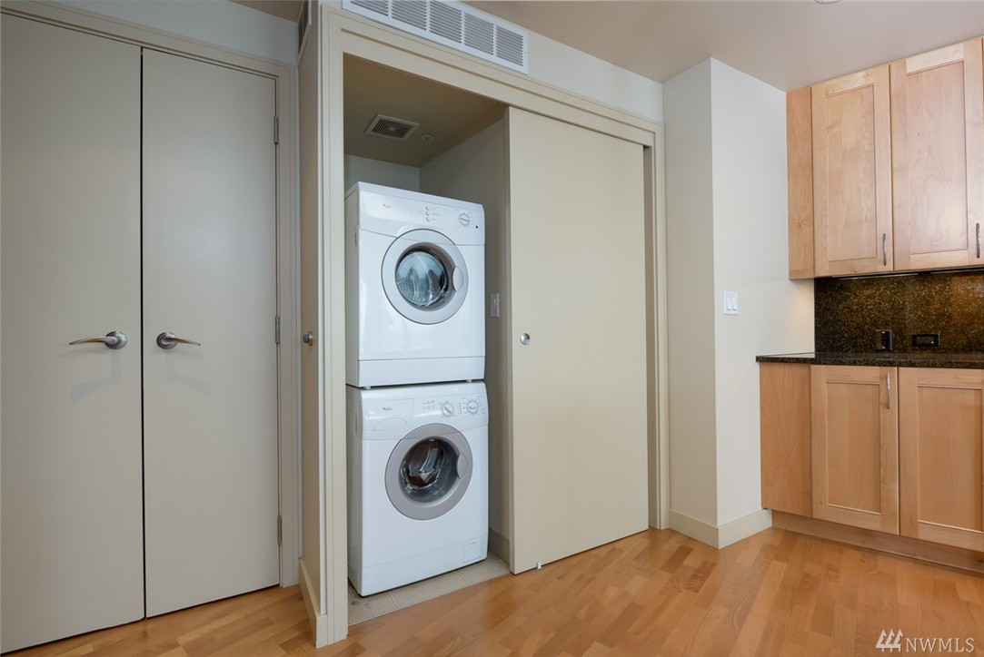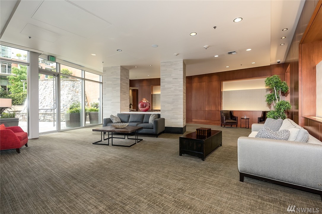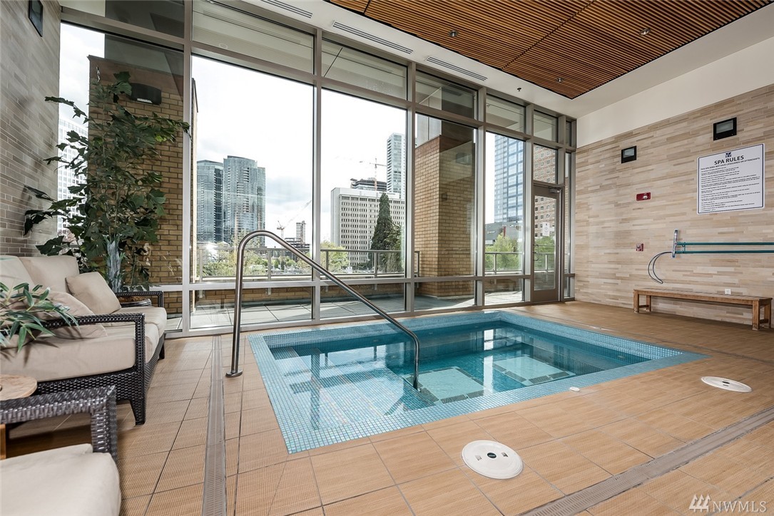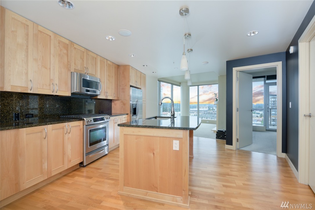 Great WASQ tower 2 . This NE facing 1 bedroom, 1 bath corner unit features brand new carpet, offset master bedroom, private balcony, floor-to-ceiling windows, built in privacy shades, imported hardwood floors, granite counters, gas fireplace, a fiberoptic line to residence and central air condition and heating. Amenities include 24-hour concierge, massage rooms, spa, owners lunge with chef’s kitchen and fitness facility, near transit center, Bellevue library, retail shopping, restaurants & more!