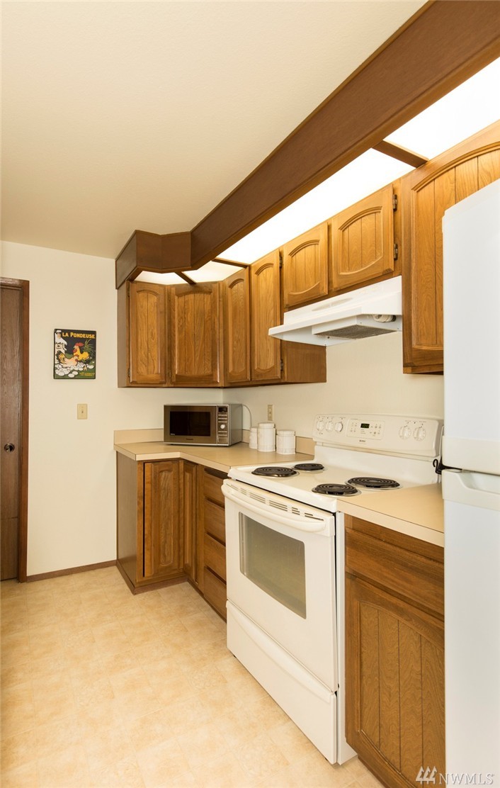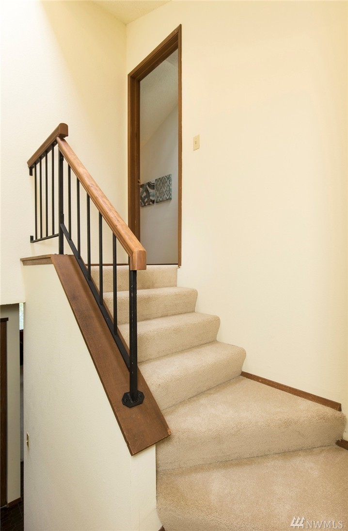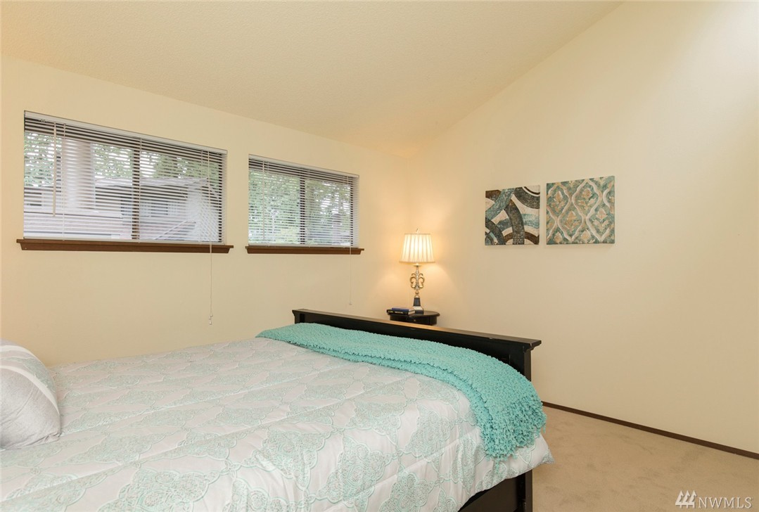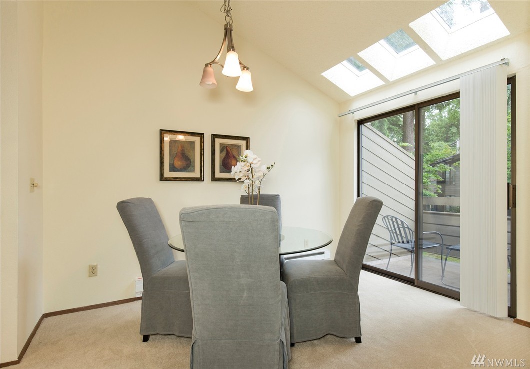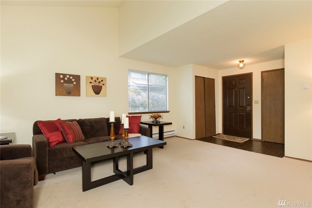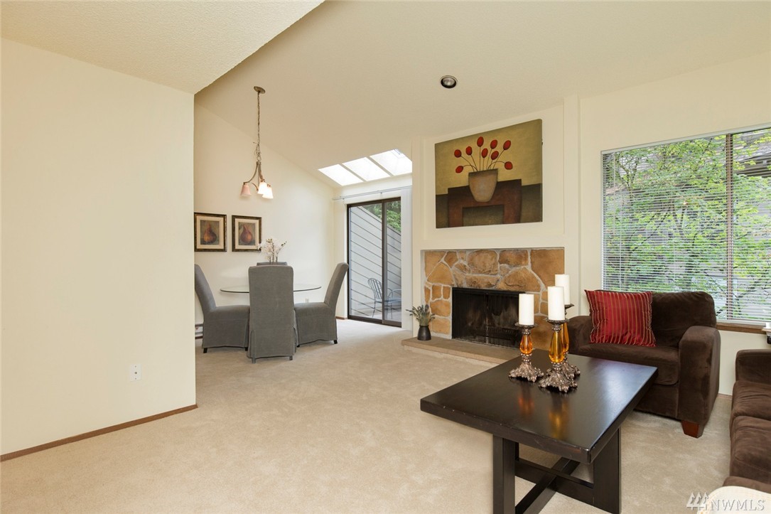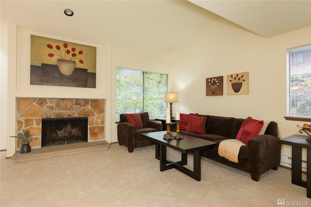 No rent Cap! Ten minutes to park and ride locations taking you in every direction. Forest like setting. This affordable home boasts two decks, and overlooks luscious greenery. Awaken to a light filled master bedroom with a private deck overlooking a treed oasis, and sip coffee on the master deck. Convenient full size washer and dryer. Two parking spaces, and a storage space off the carport. Move in build a fire in the fireplace and enjoy the freshly painted walls.